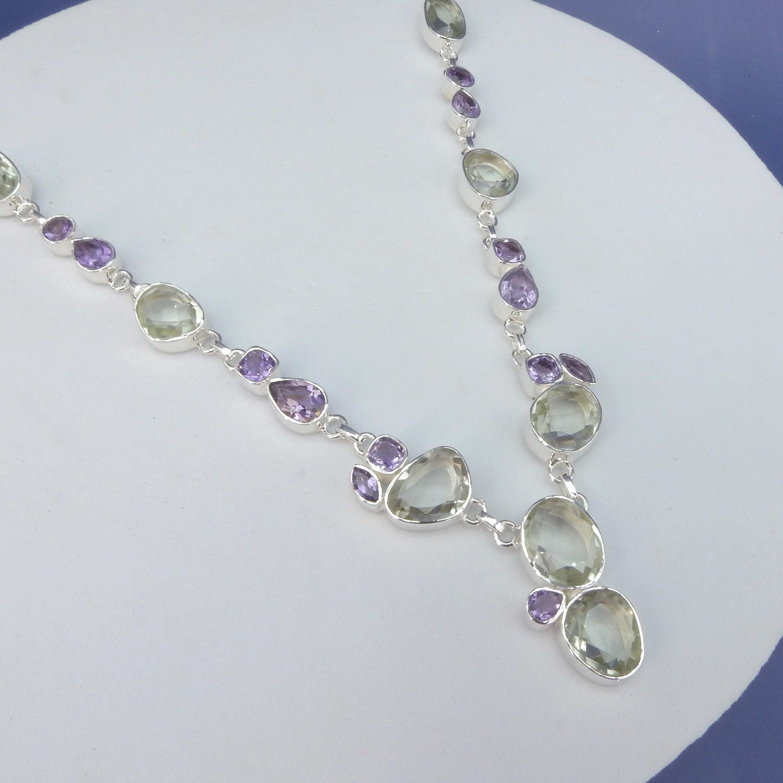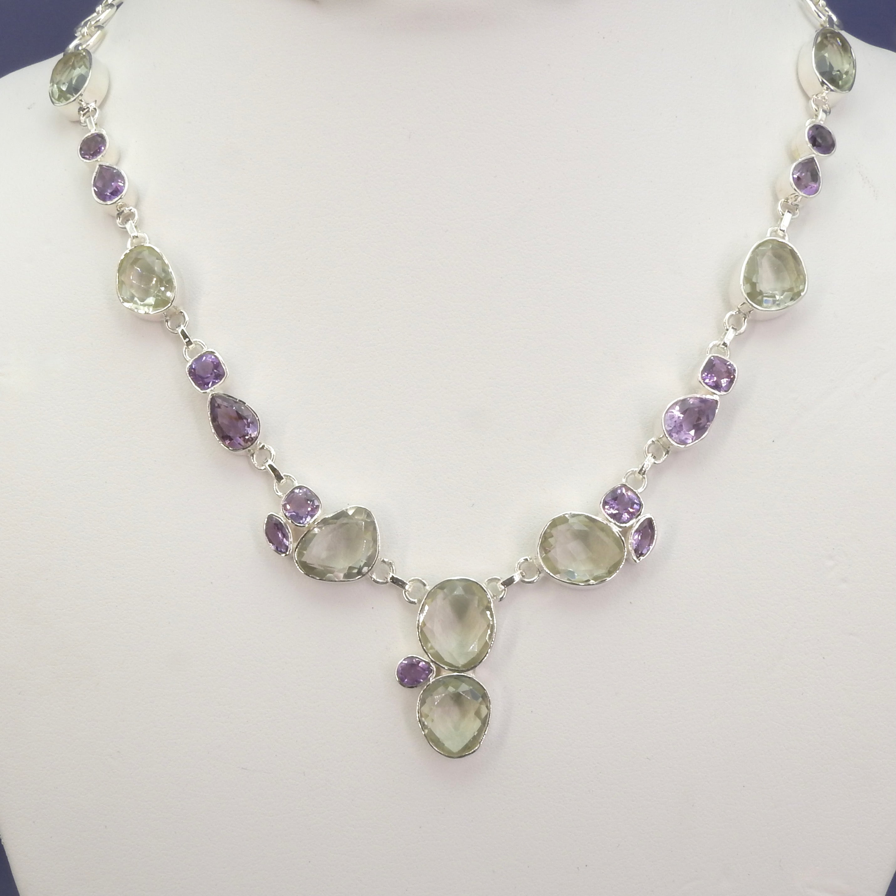 Sterling Silver Green & Purple Amethyst Statement Necklace