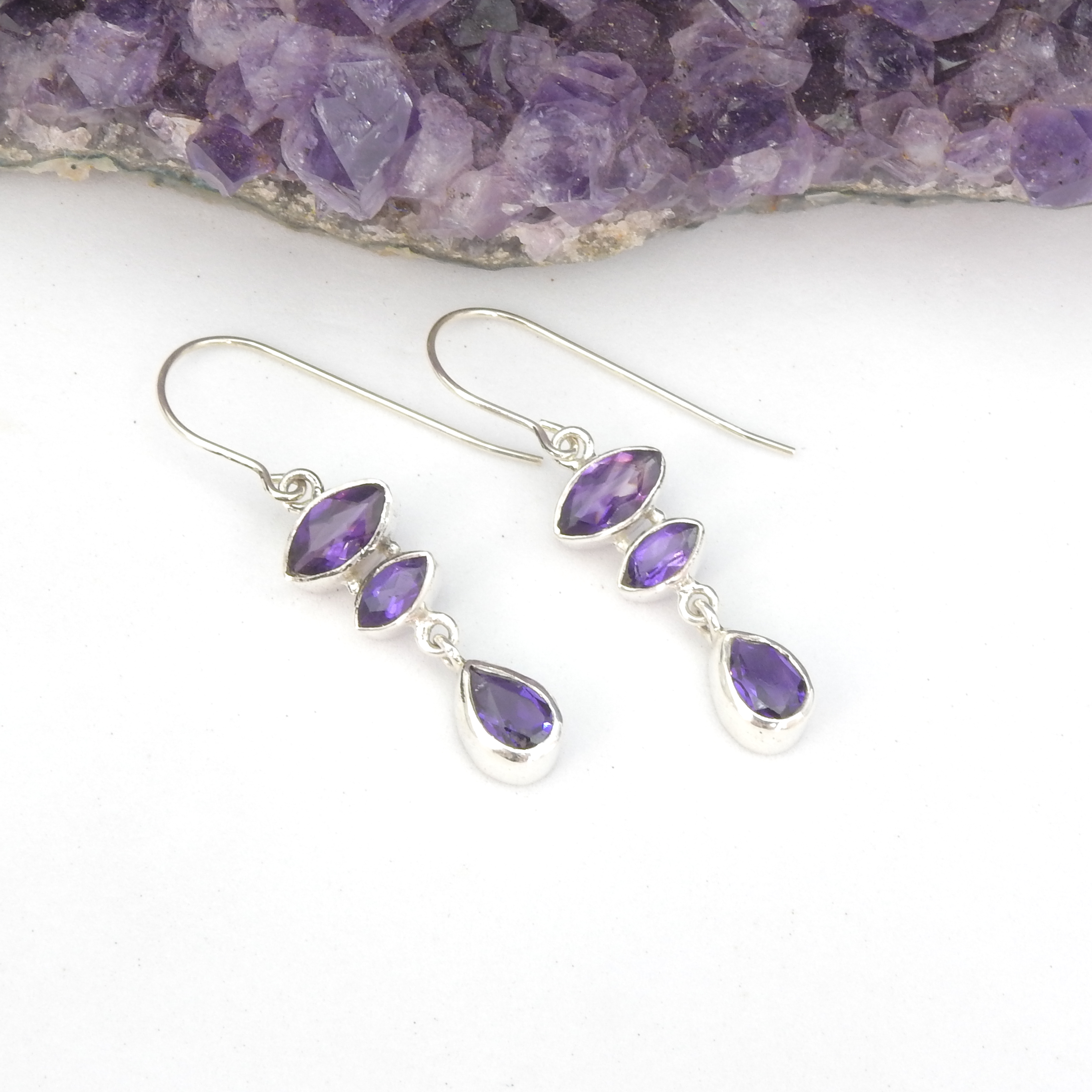 Sterling Silver Triple Amethyst Earrings