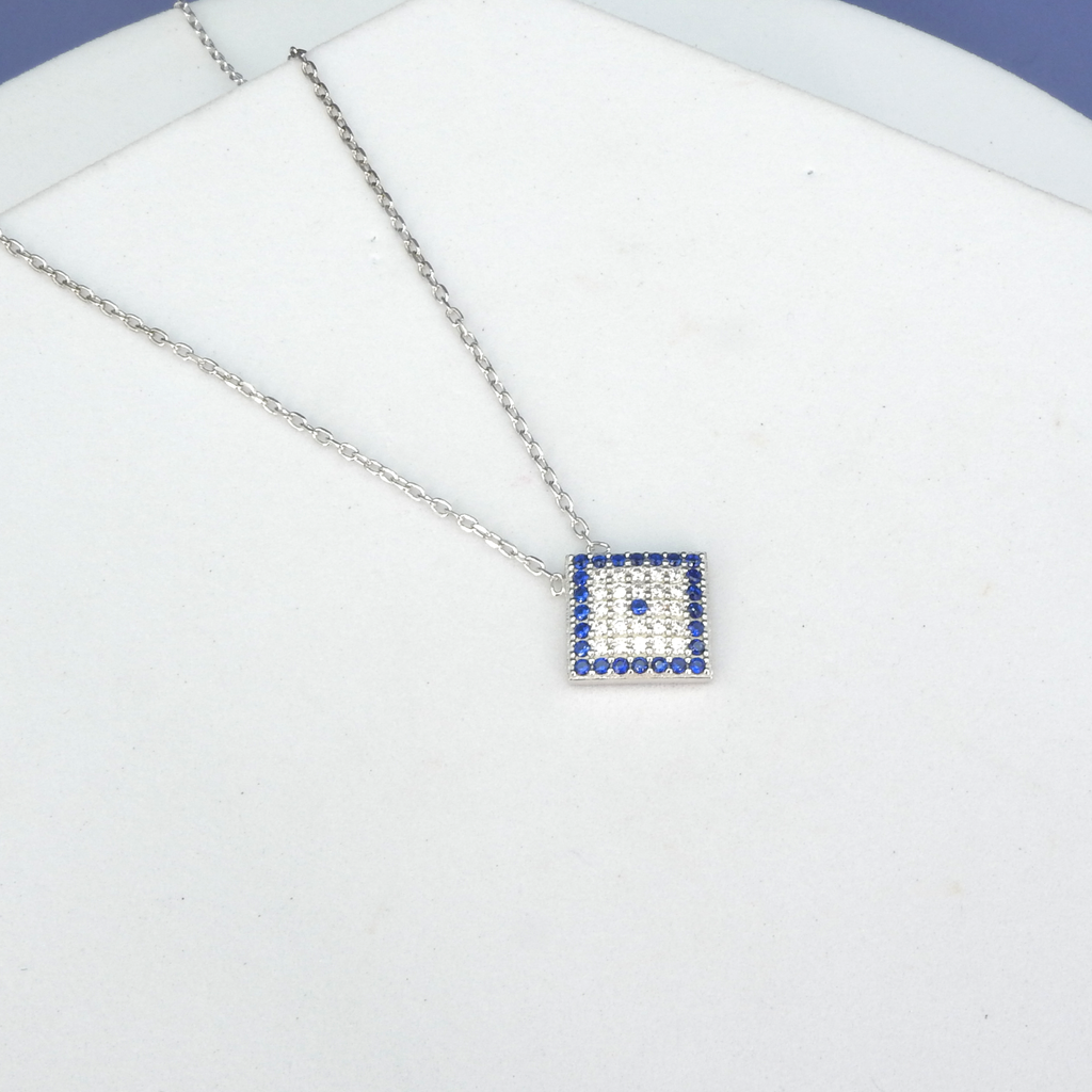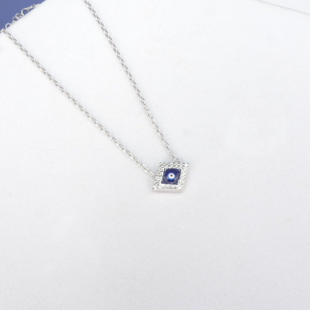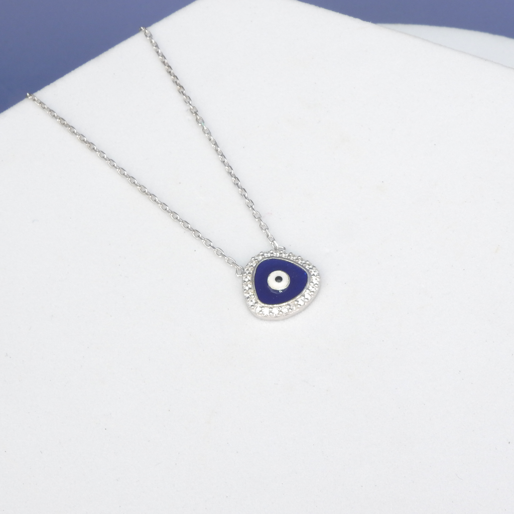 Sterling Silver CZ & Enamel Evil Eye Necklace