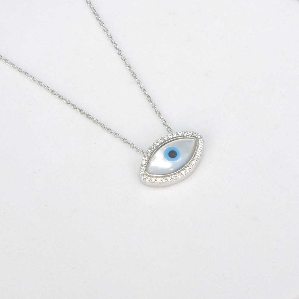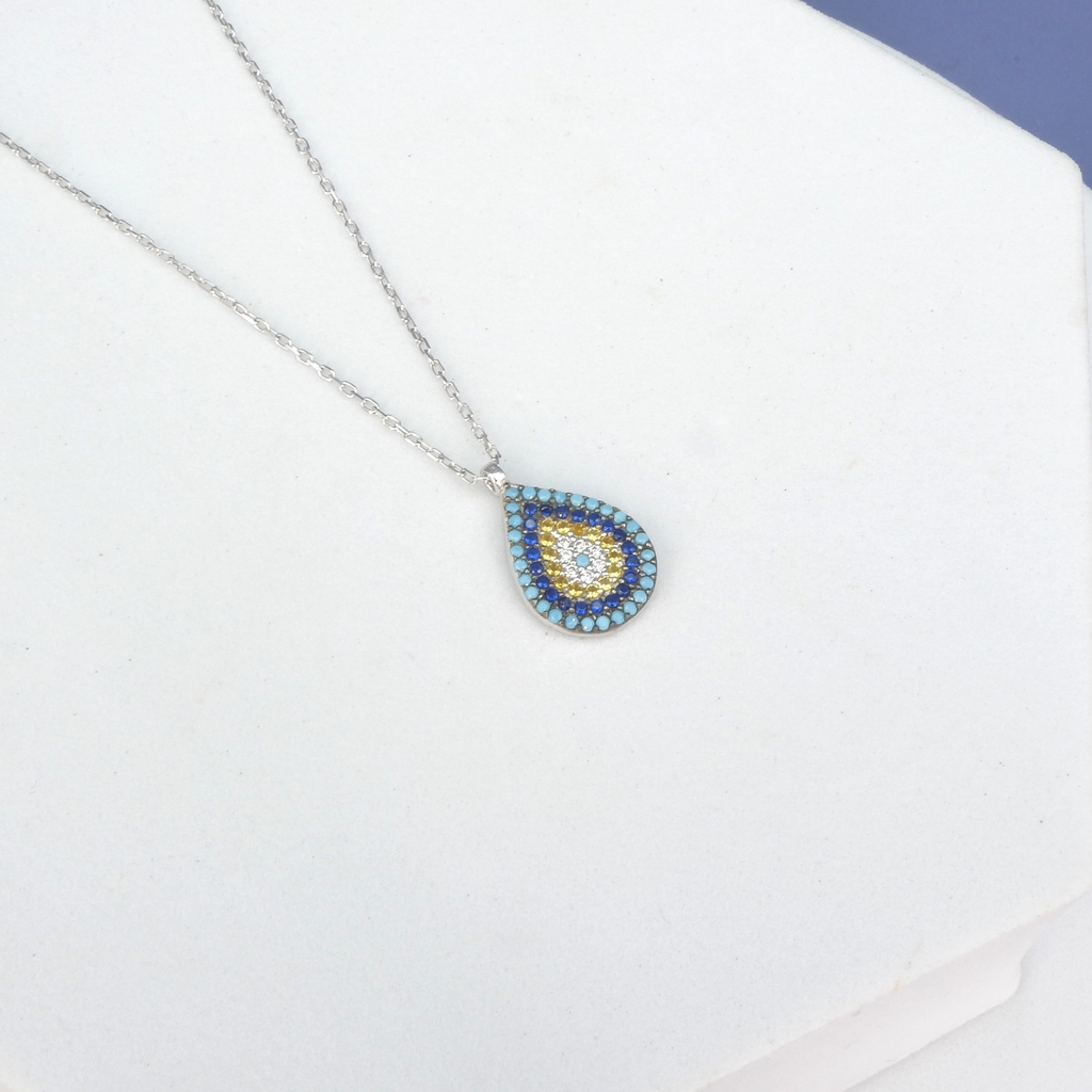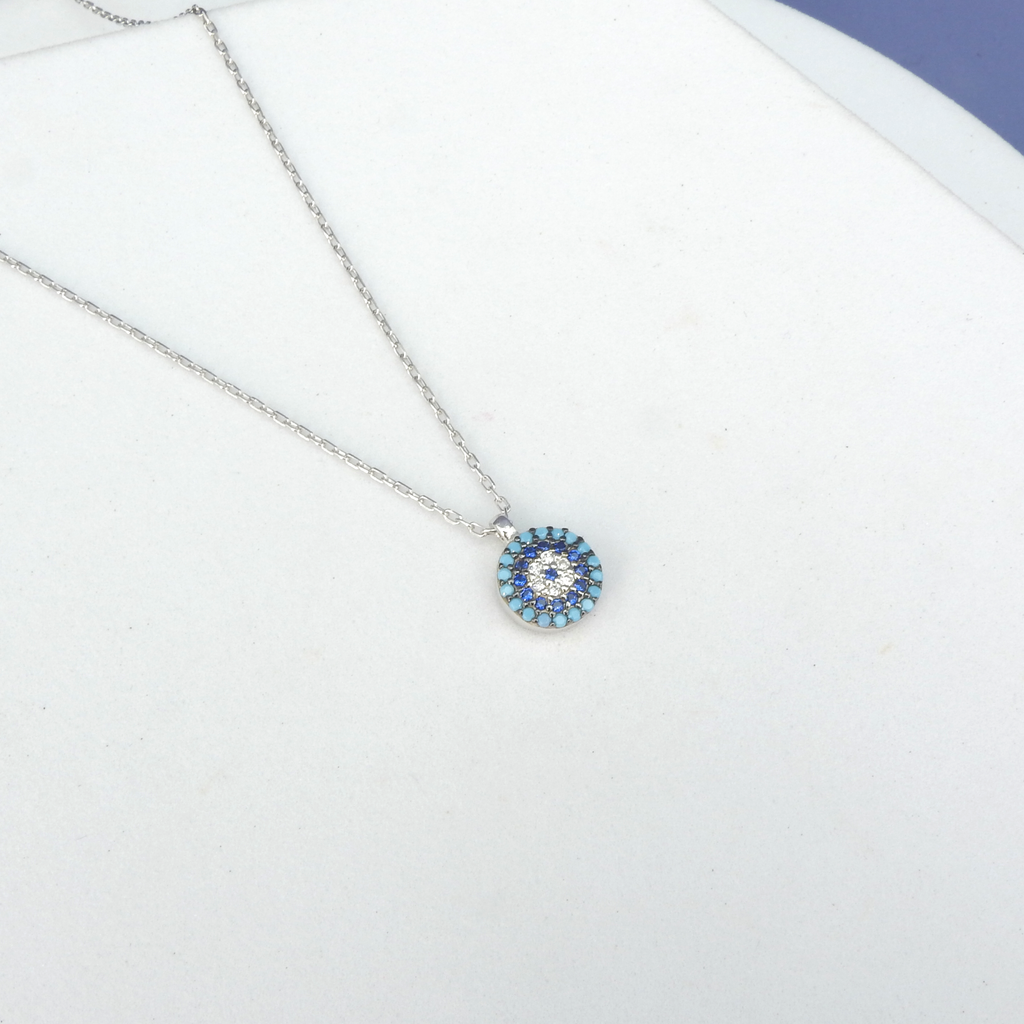 Sterling Silver CZ & Enamel Evil Eye Necklace