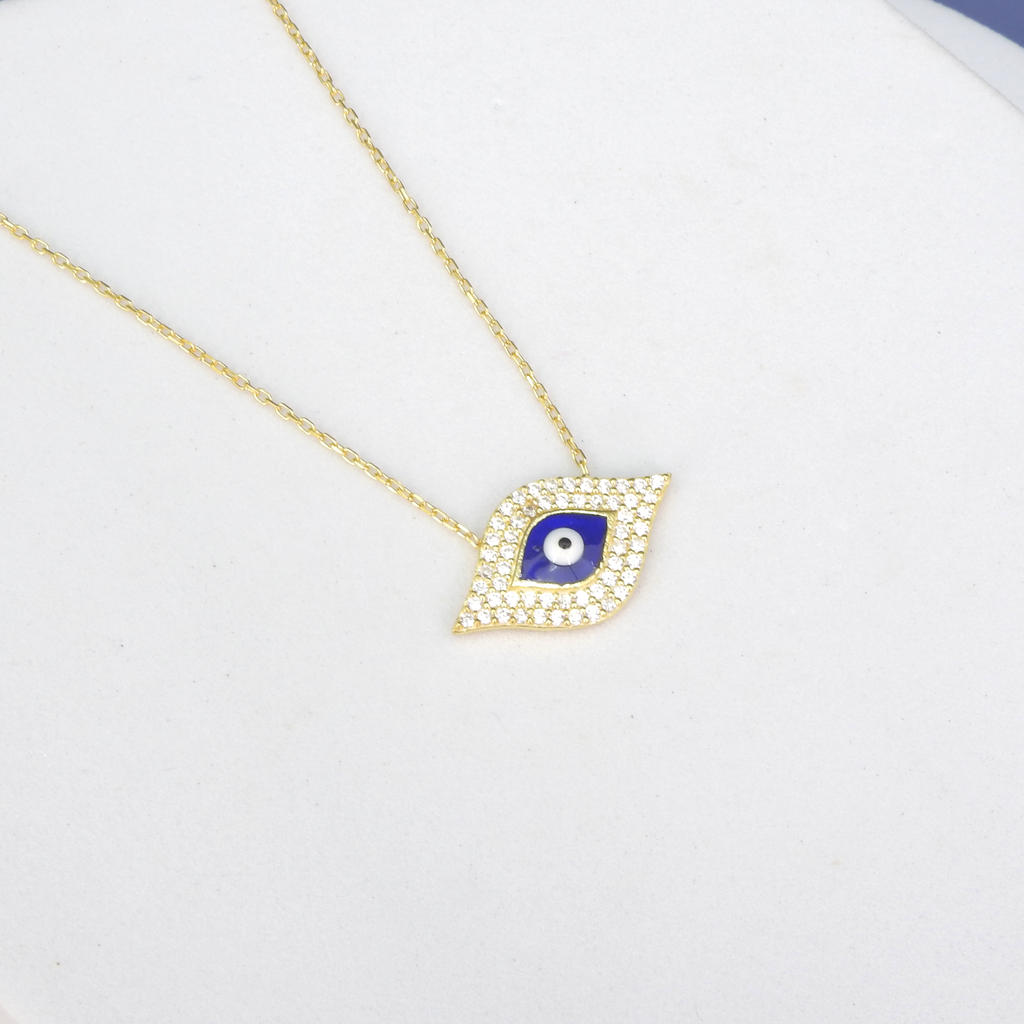 Sterling Silver Gold Vermeil Crystal Evil Eye Necklace