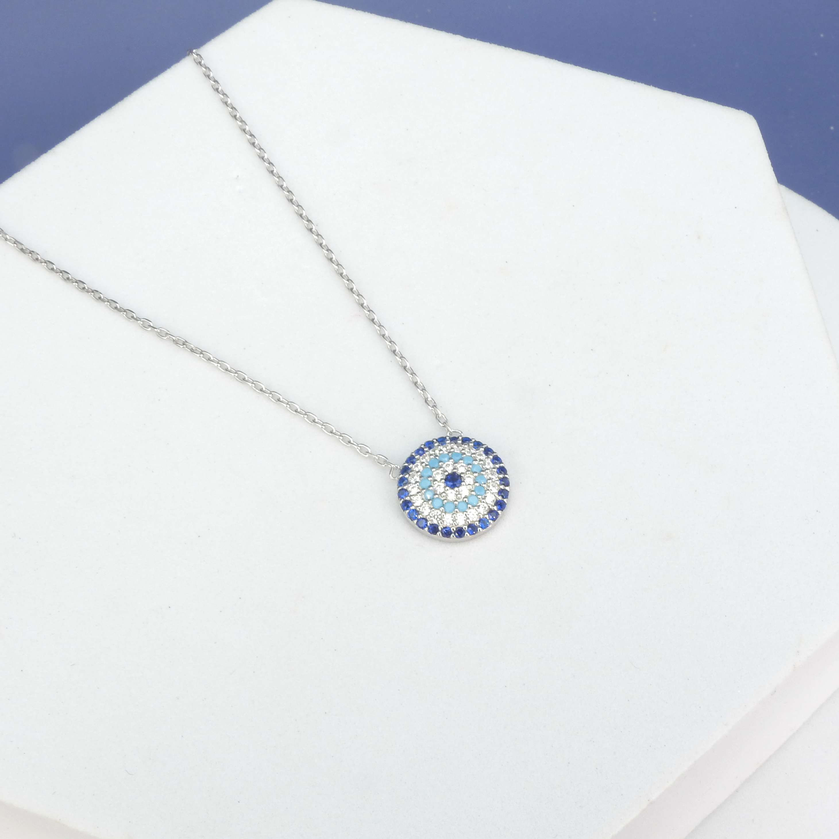 Sterling Silver CZ & Created Sapphire Evil Eye Necklace