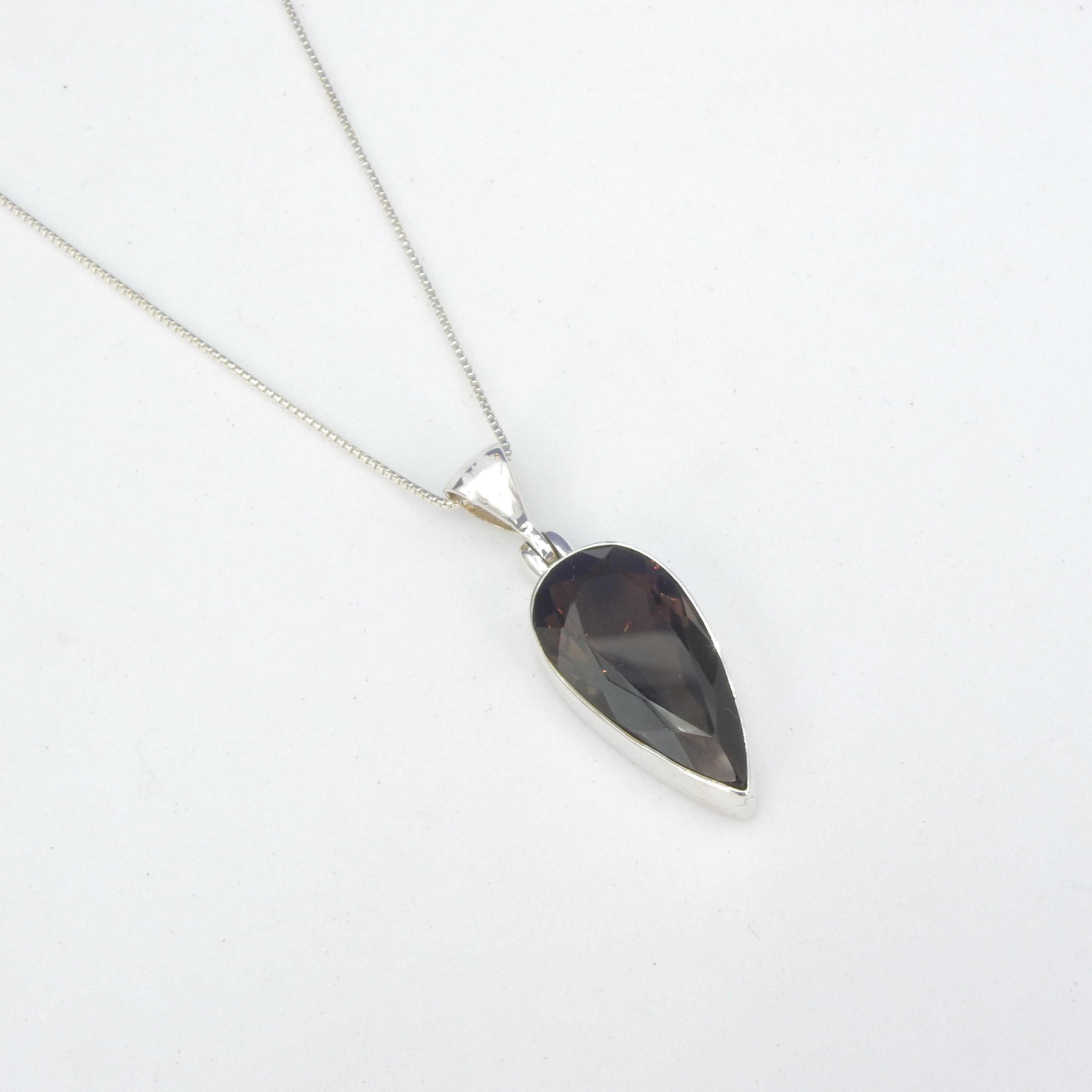 Beautiful faceted teardrop smokey quartz pendant - Faceted smokey quartz - Set in sterling silver - 1 1/2" with bale 1/2" wide - 18" silver chain