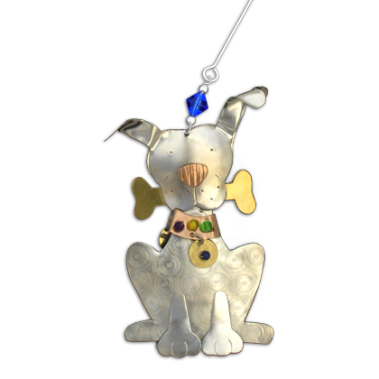 - Copper and brass - Whimsical ornament - Glass bead accents - Attached metal hook - 4 tall 3" wide