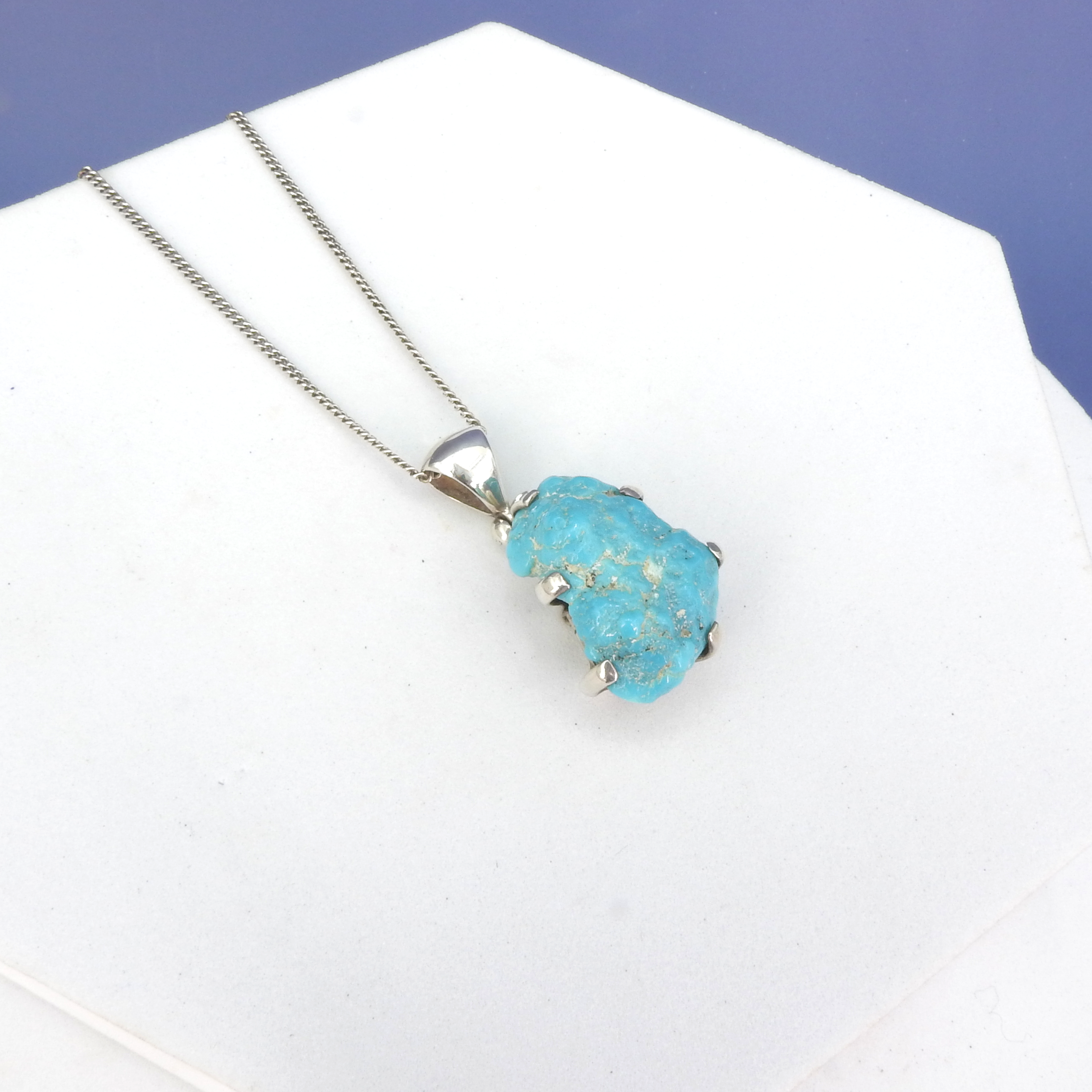 Turquoise nugget set in sterling silver - Turquoise - Sterling silver - 1 1/4" long with bale 3/4" wide - 16" silver chain