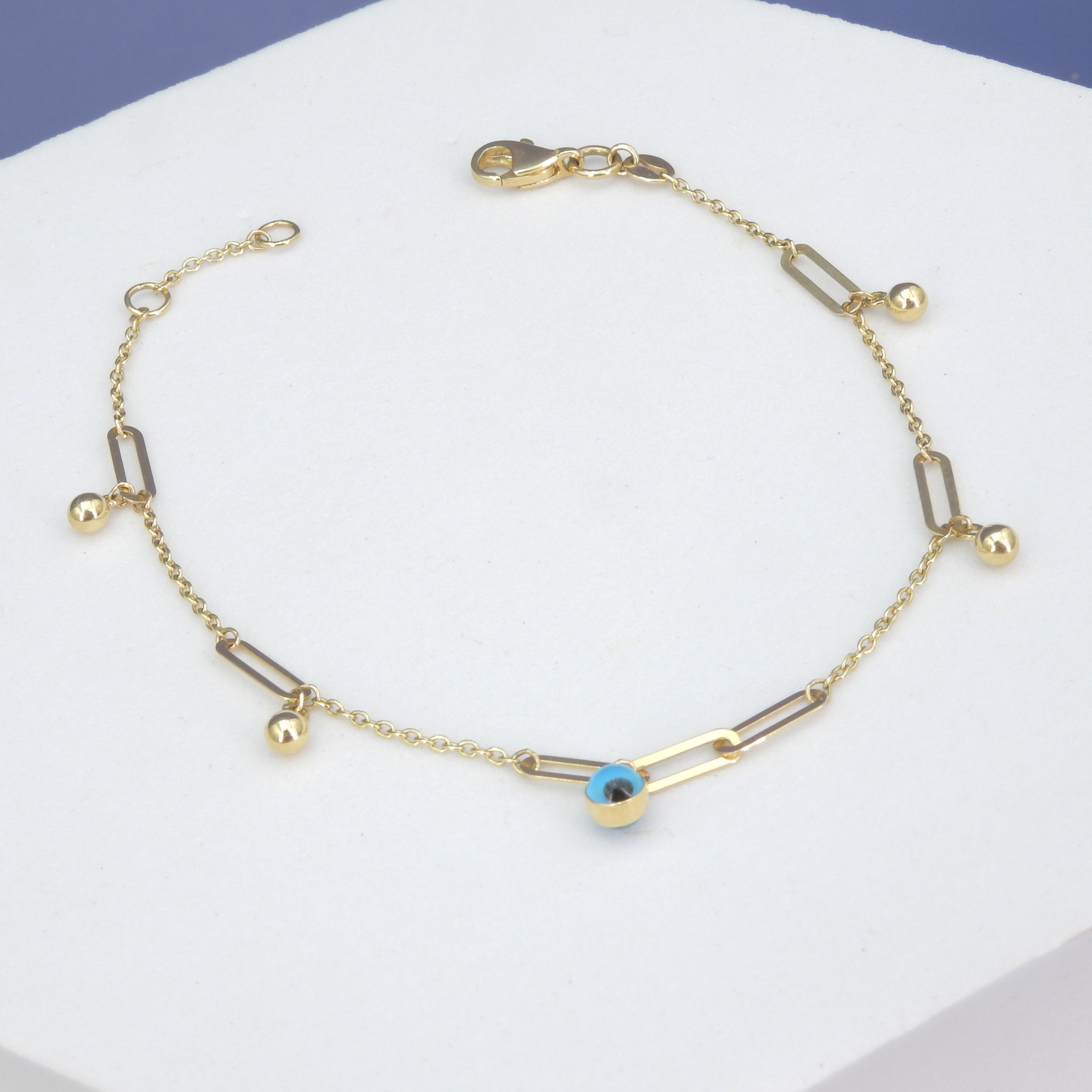 14KT Yellow Gold Evil Eye Dangle Bracelet