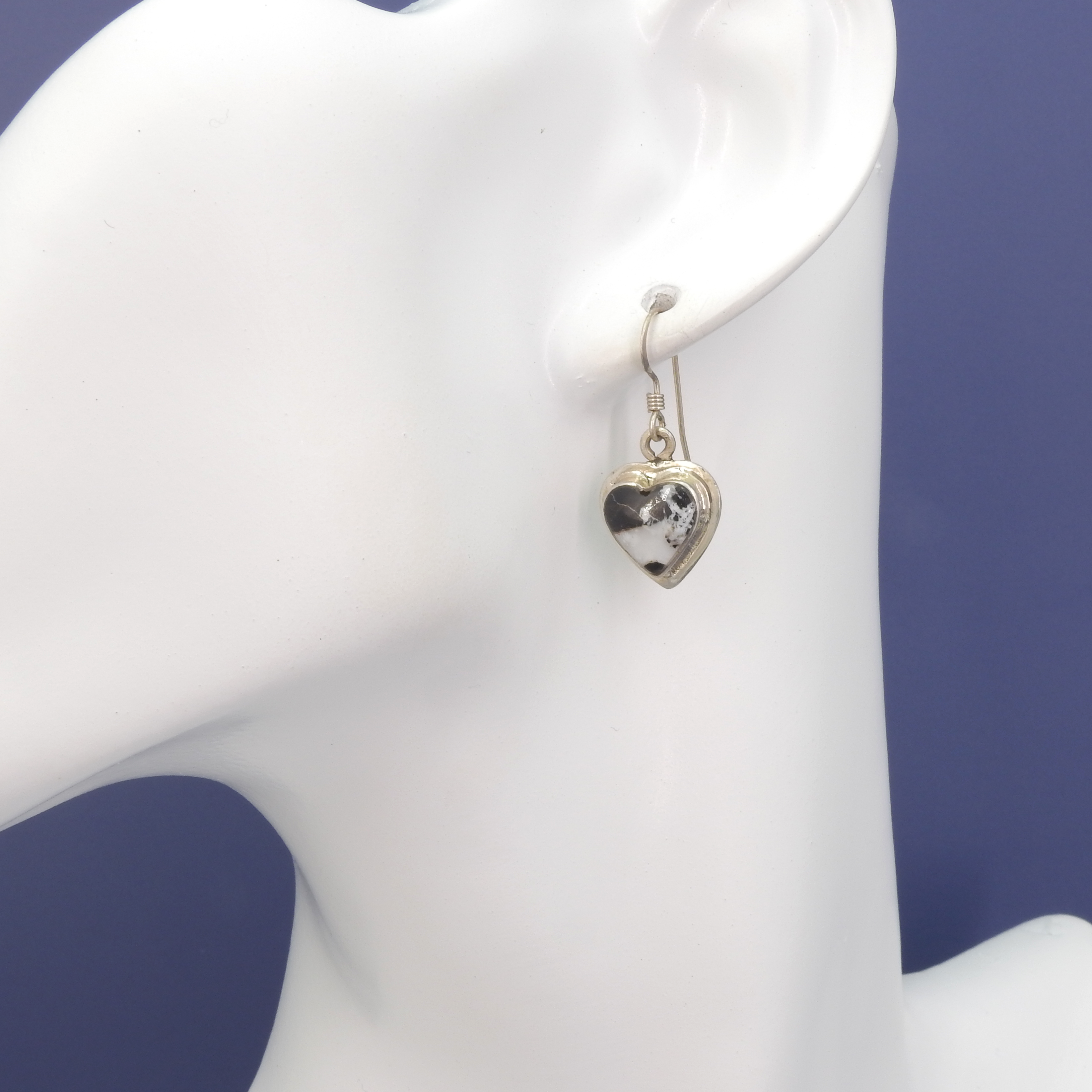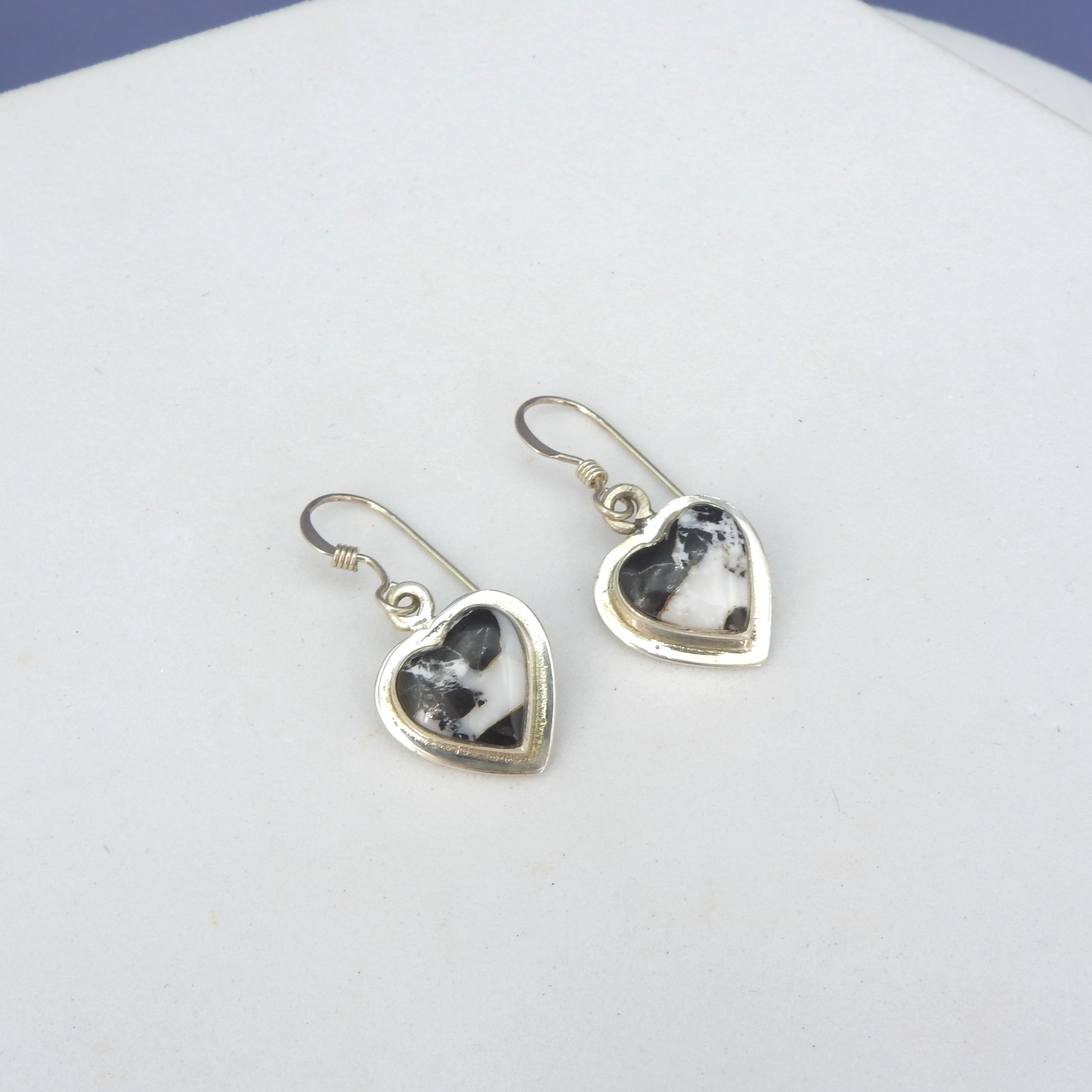 Delicate buffalo turquoise heart shaped earrings - Buffalo turquoise - Sterling silver - 5/8" long 1/2" wide - Fishhook ear wire