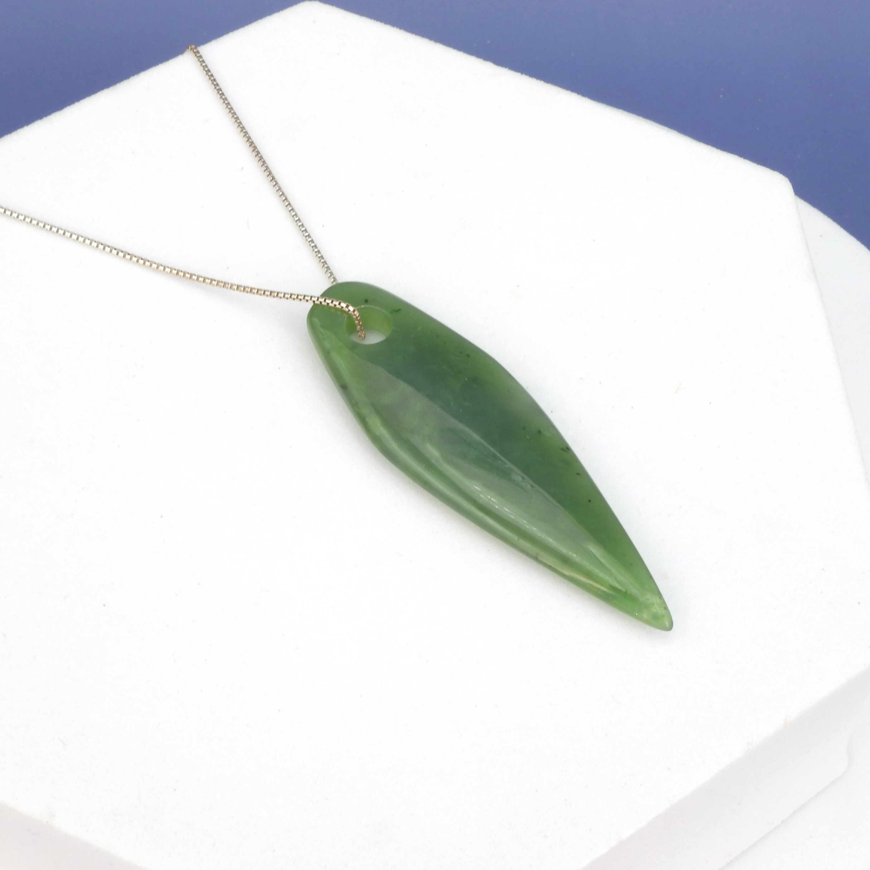 Jade drop pendant - Sold jade drop - Jade measures 2 1/4" long x 3/4" wide - 18" sterling silver chain included - Canadian jade