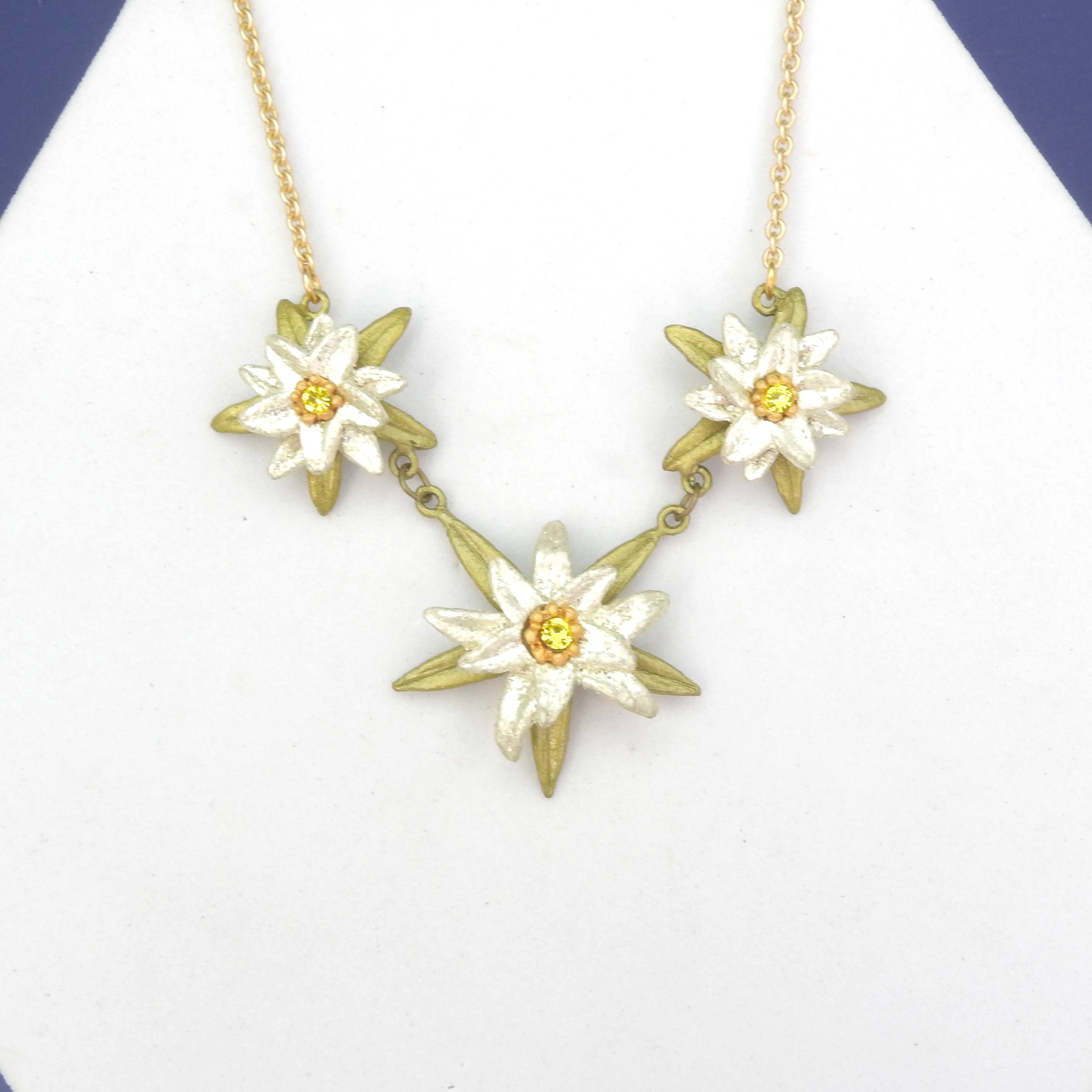 Michael Michaud Cast Bronze Gold Leaf Triple Edelweiss Necklace
