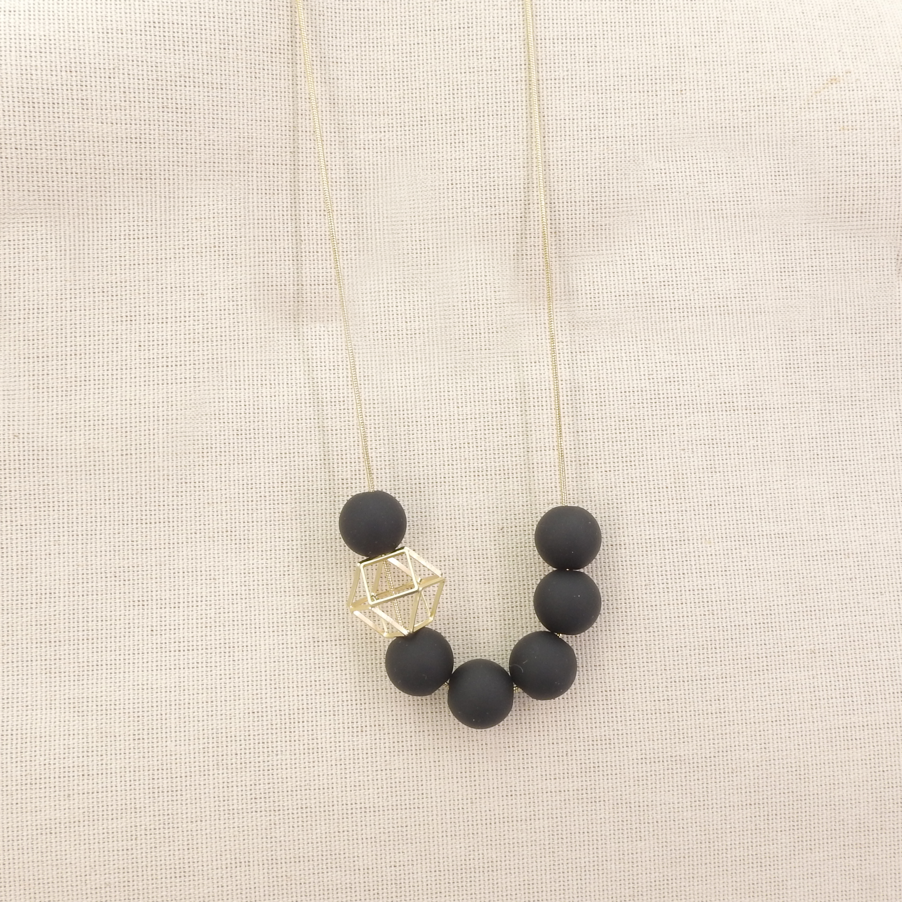 Minimalistic, modern and design driven. Each piece in this collection is a wearable work of art A stunning necklace made with zinc coated orbs 12KT plated snake chain 12KT gold plated hexigon bead - Orbs are 1/2" in diameter - Adjustable from 18" - 20" long - Designed and made in Toronto, Canada