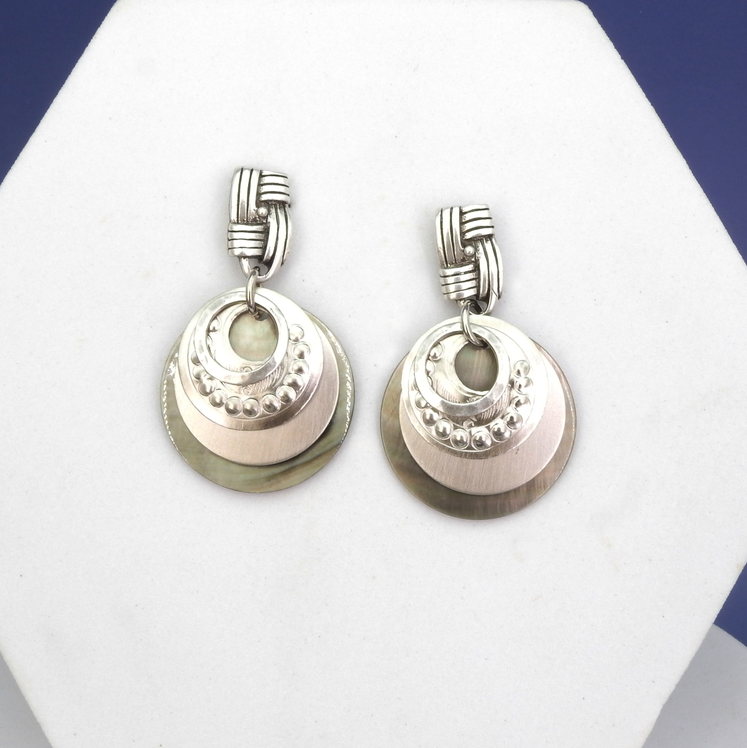 John Michael Richardson Matte Silver Earrings w/ Mother of Pearl