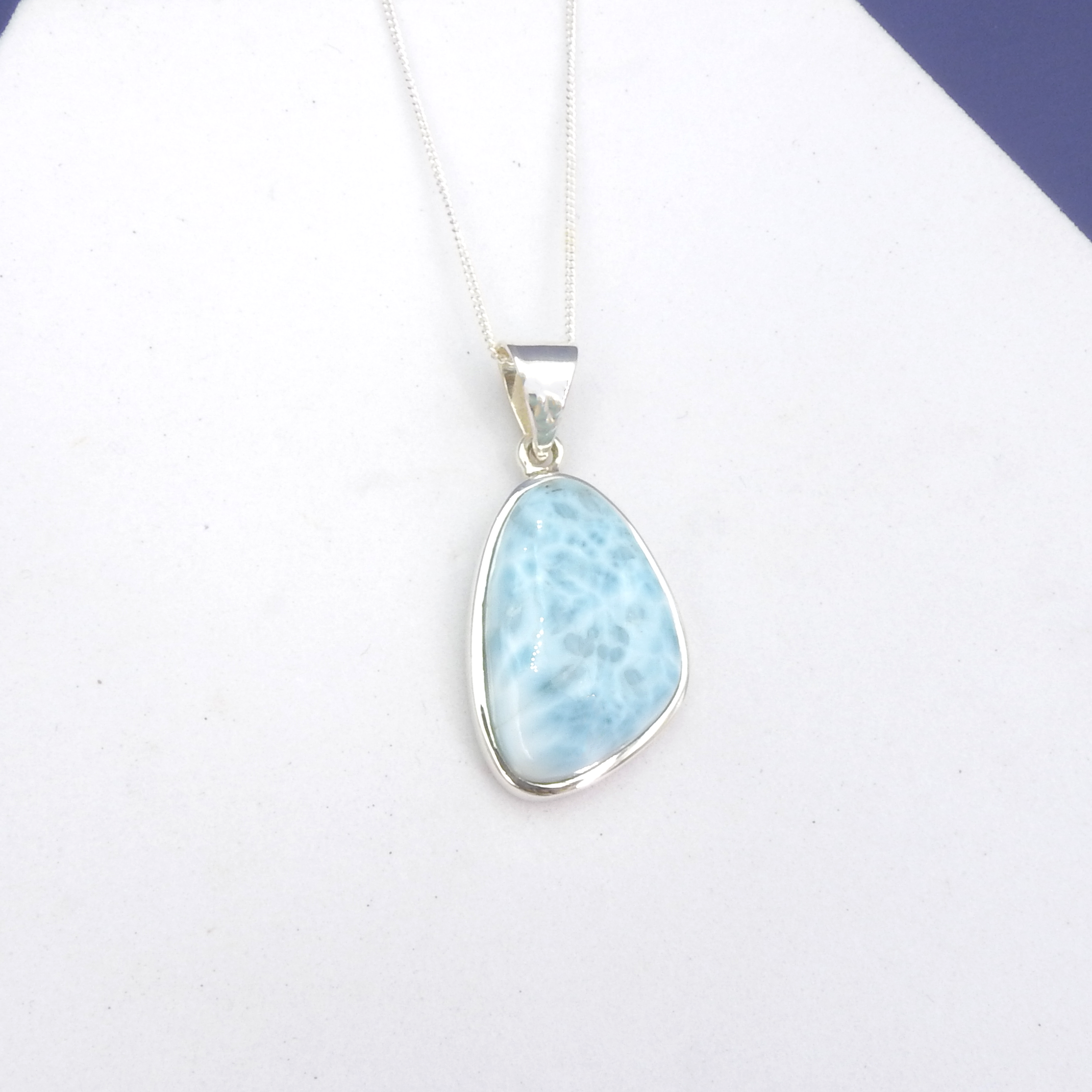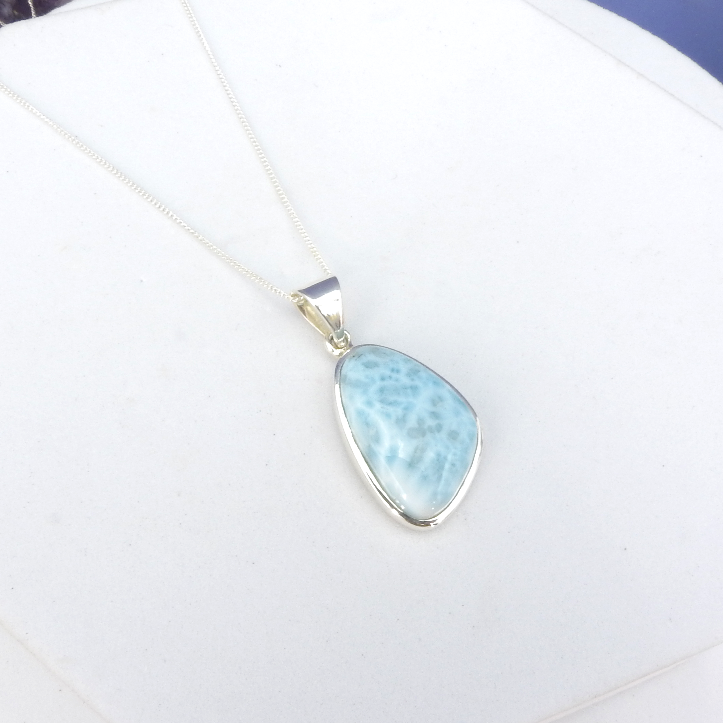 Beautiful larimar pendant - Smooth larimar - Set in sterling silver - 1 1/4" long with bale 5/8" wide - 18" silver chain included