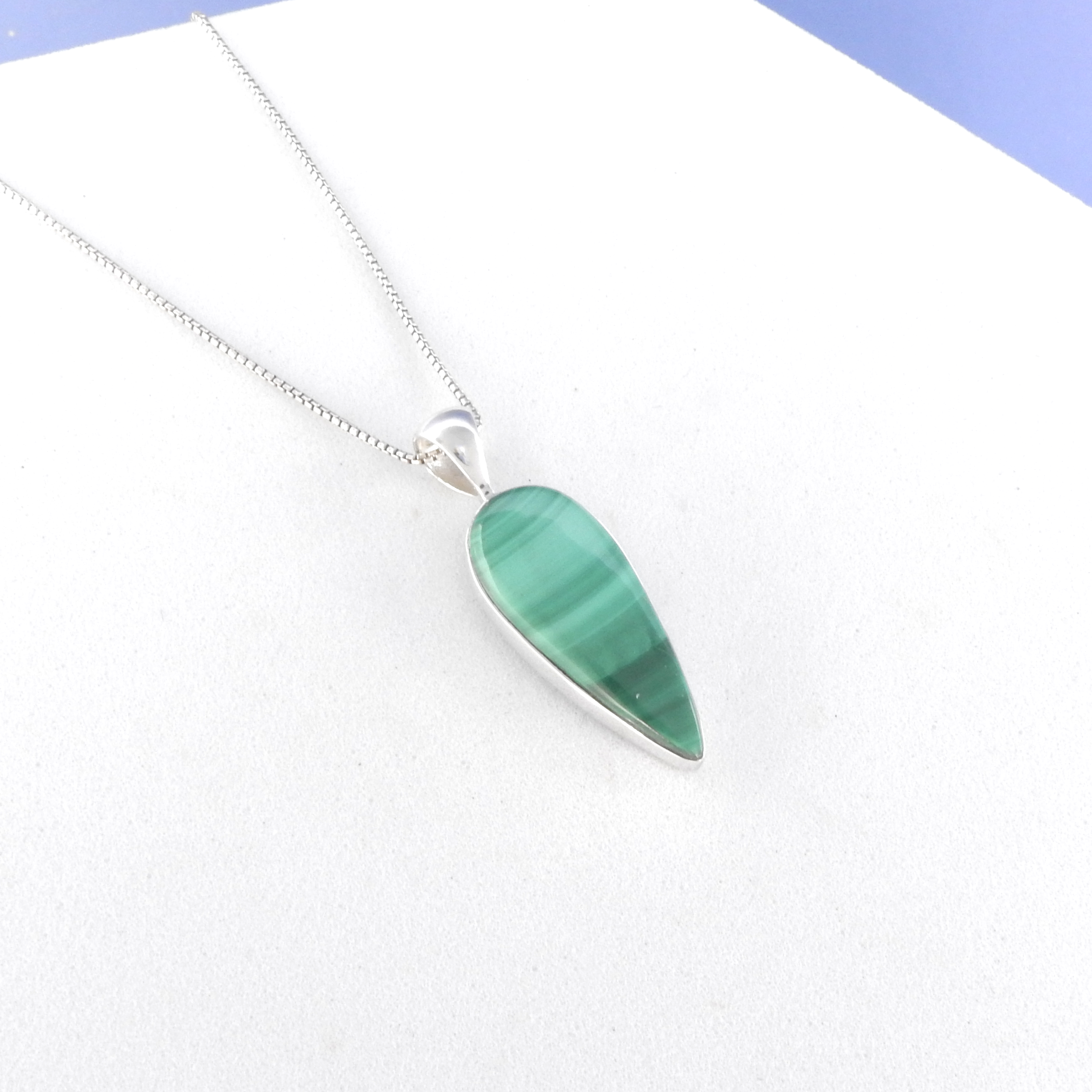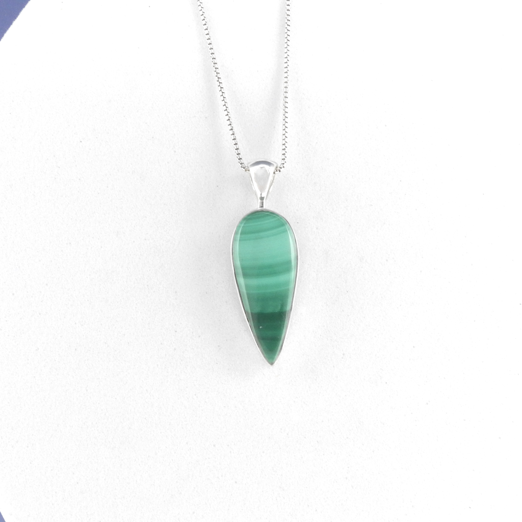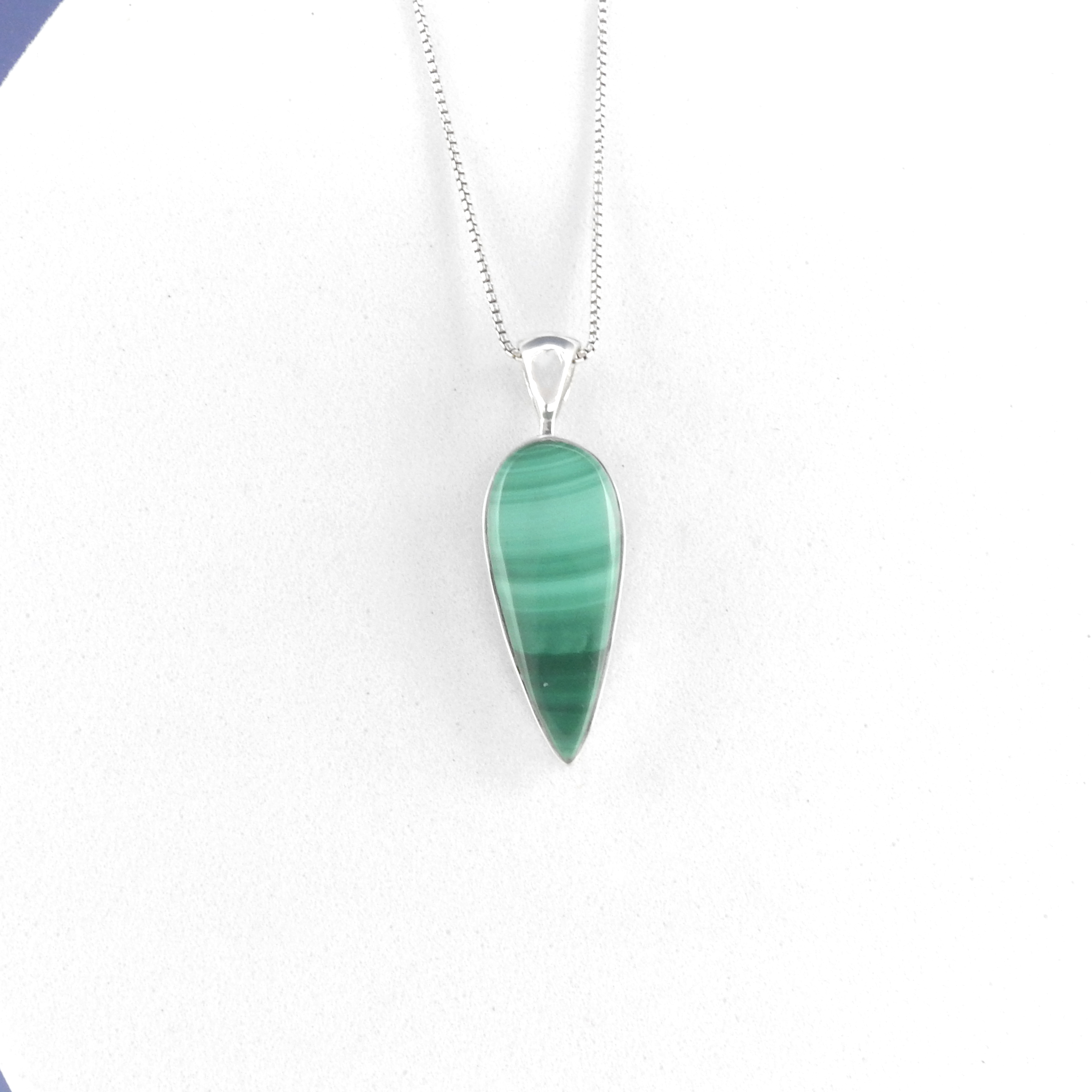 Striking malachite teardrop pendant - Sterling silver - Malachite - Measures 1 1/4" long with bale 35/8" wide - 18" silver chain included