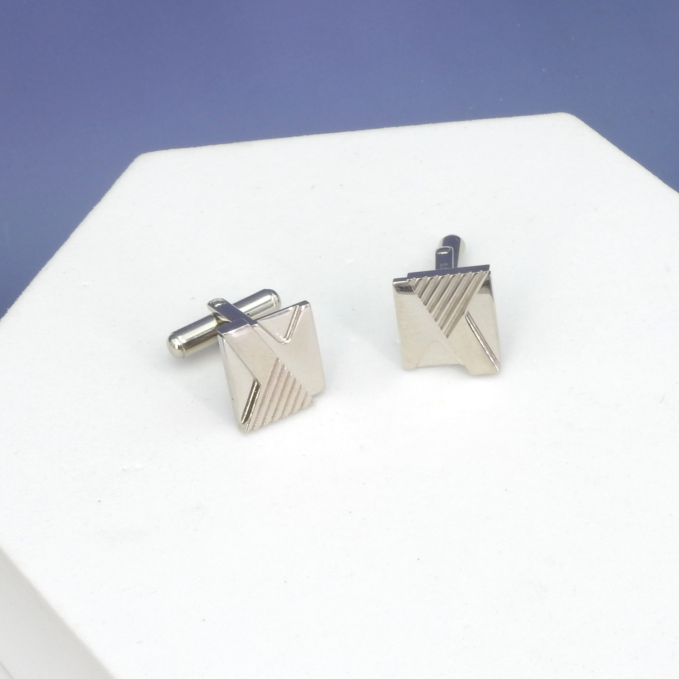 Etched geometric stainless steel cufflinks - Stainless steel - 1/2" square