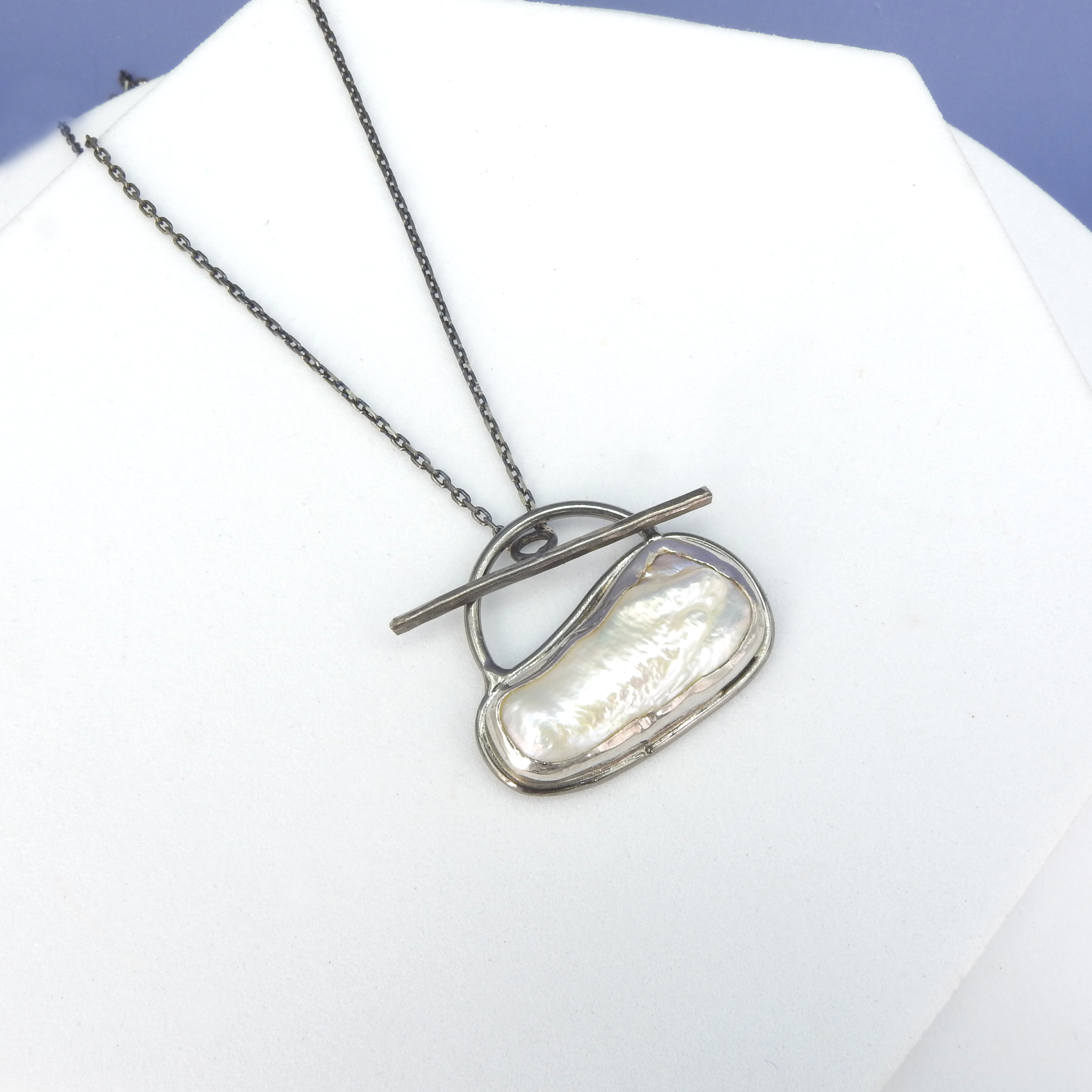 Oxidized Sterling Silver Mabe Pearl Necklace