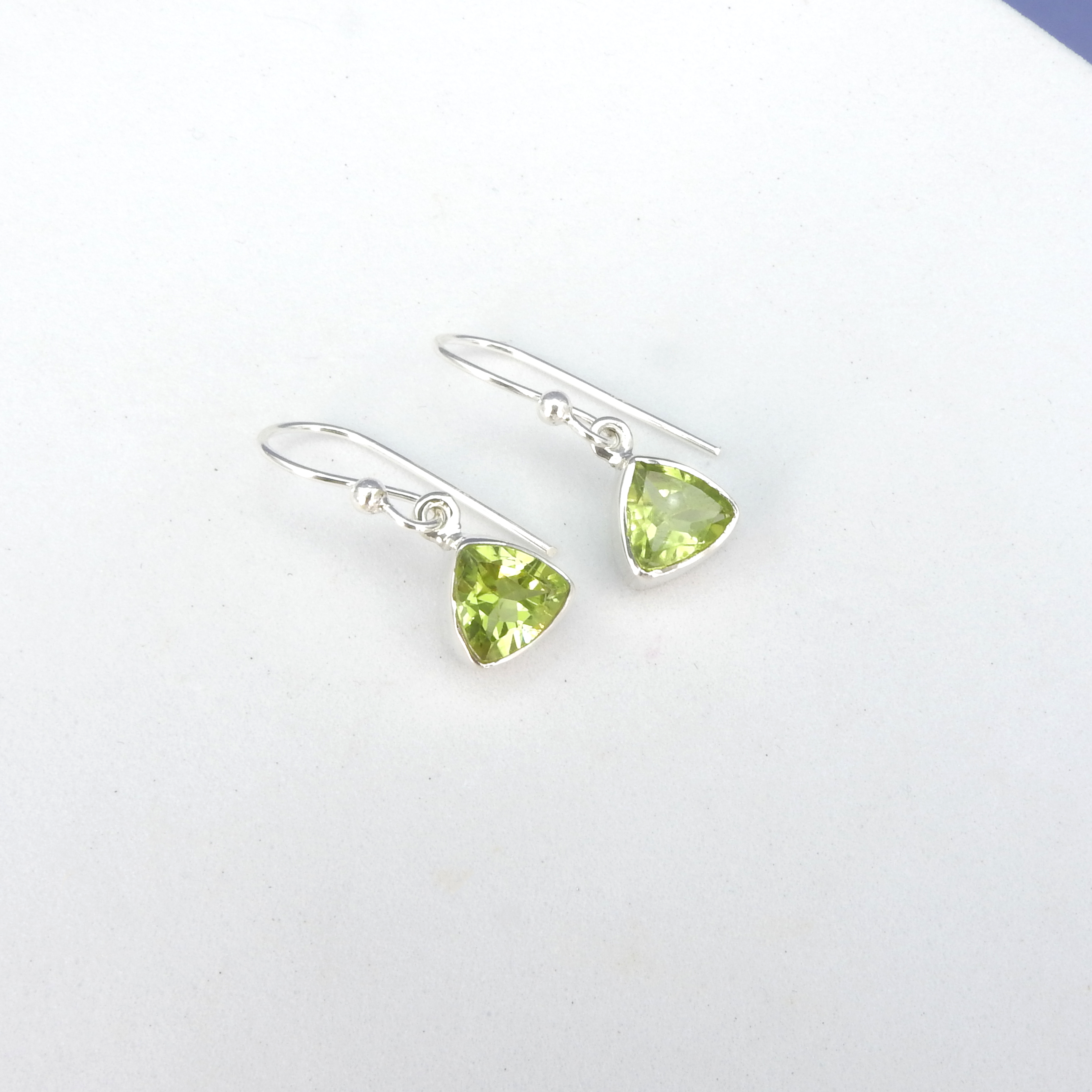 Beautiful small triangle faceted peridot earrings - Sterling silver - Faceted peridot - Measures 3/8" long 1/4" wide - Fishhook ear wires