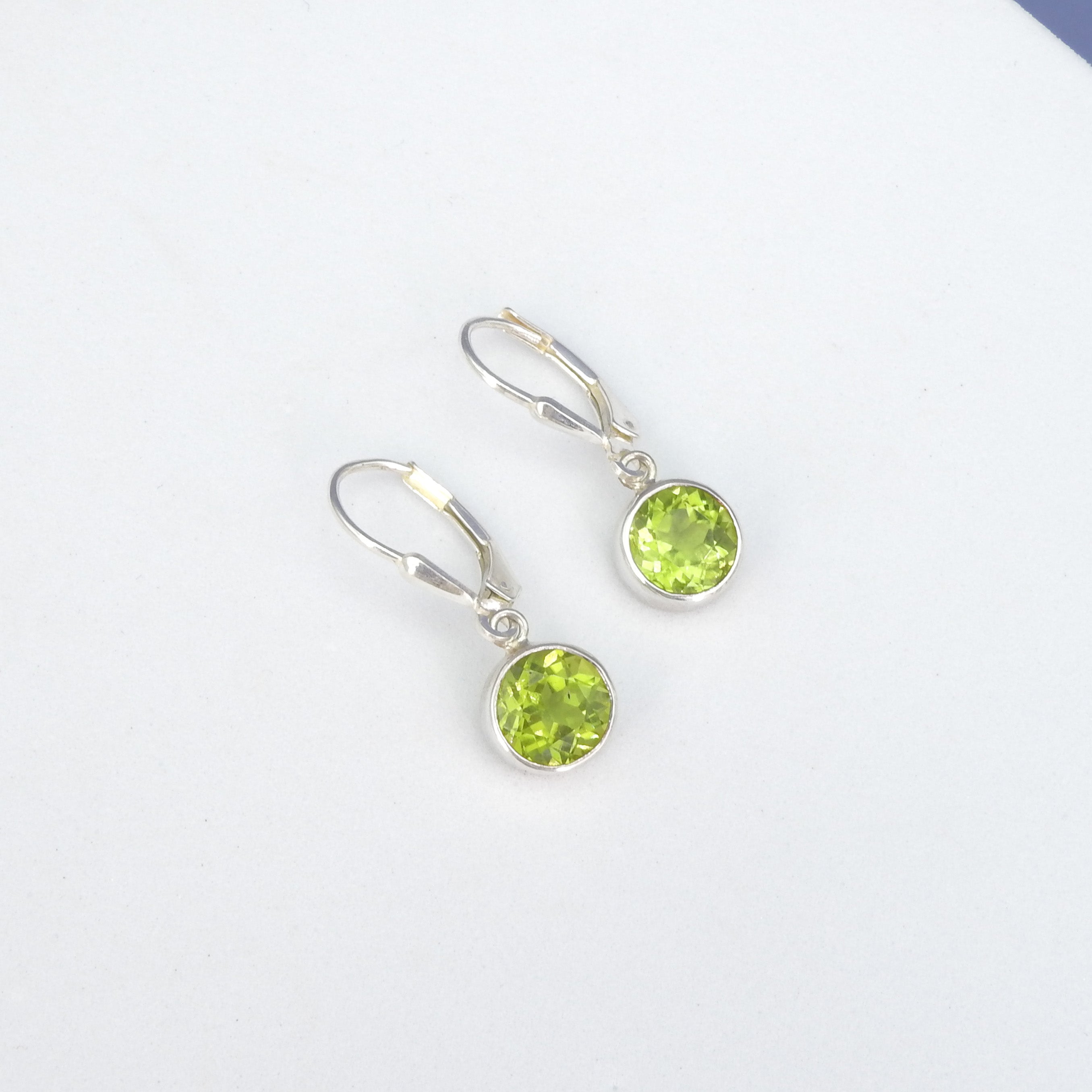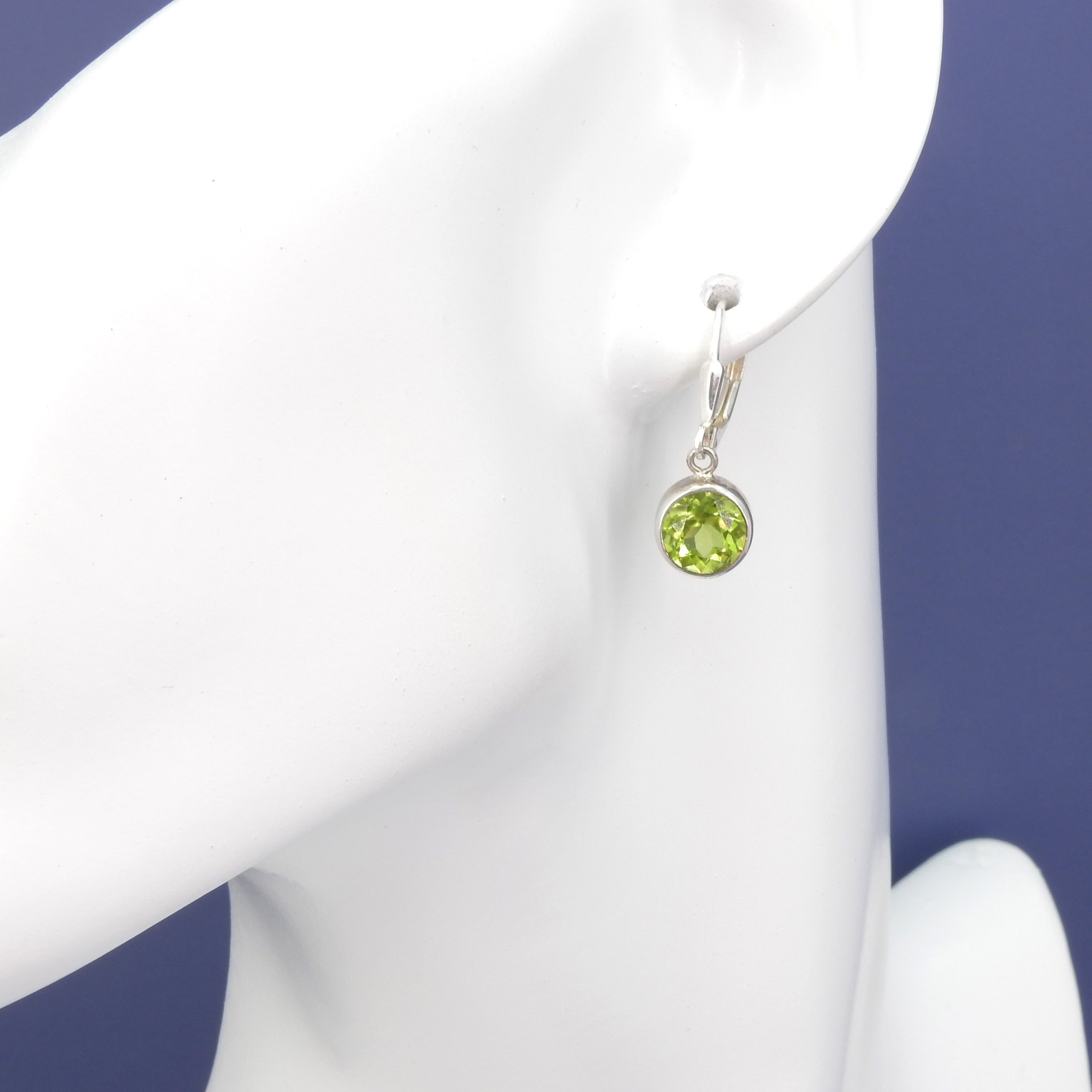 Pretty little faceted round peridot earrings - Sterling silver - Faceted peridot - 1/2" long 3/8" wide - Leverback ear wires