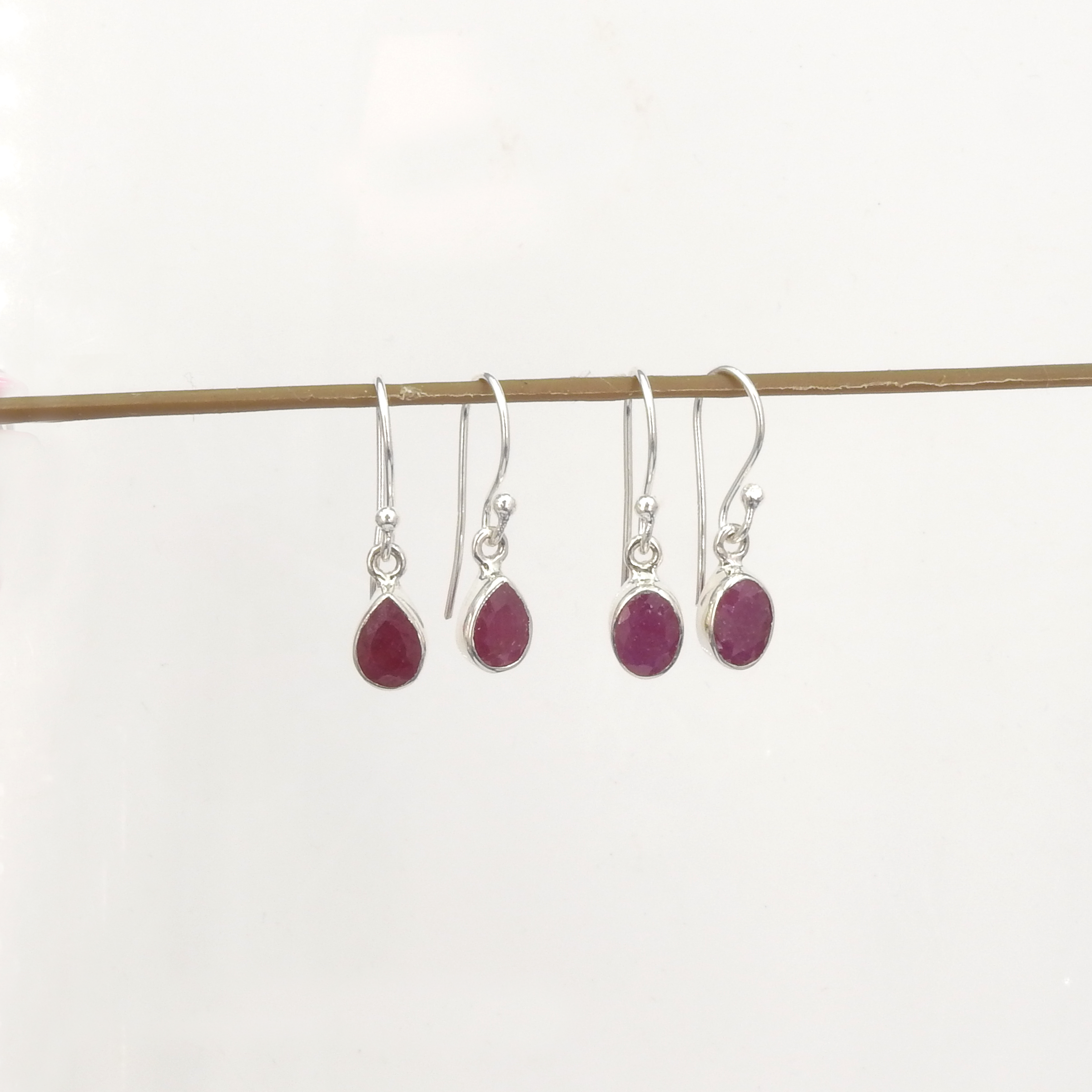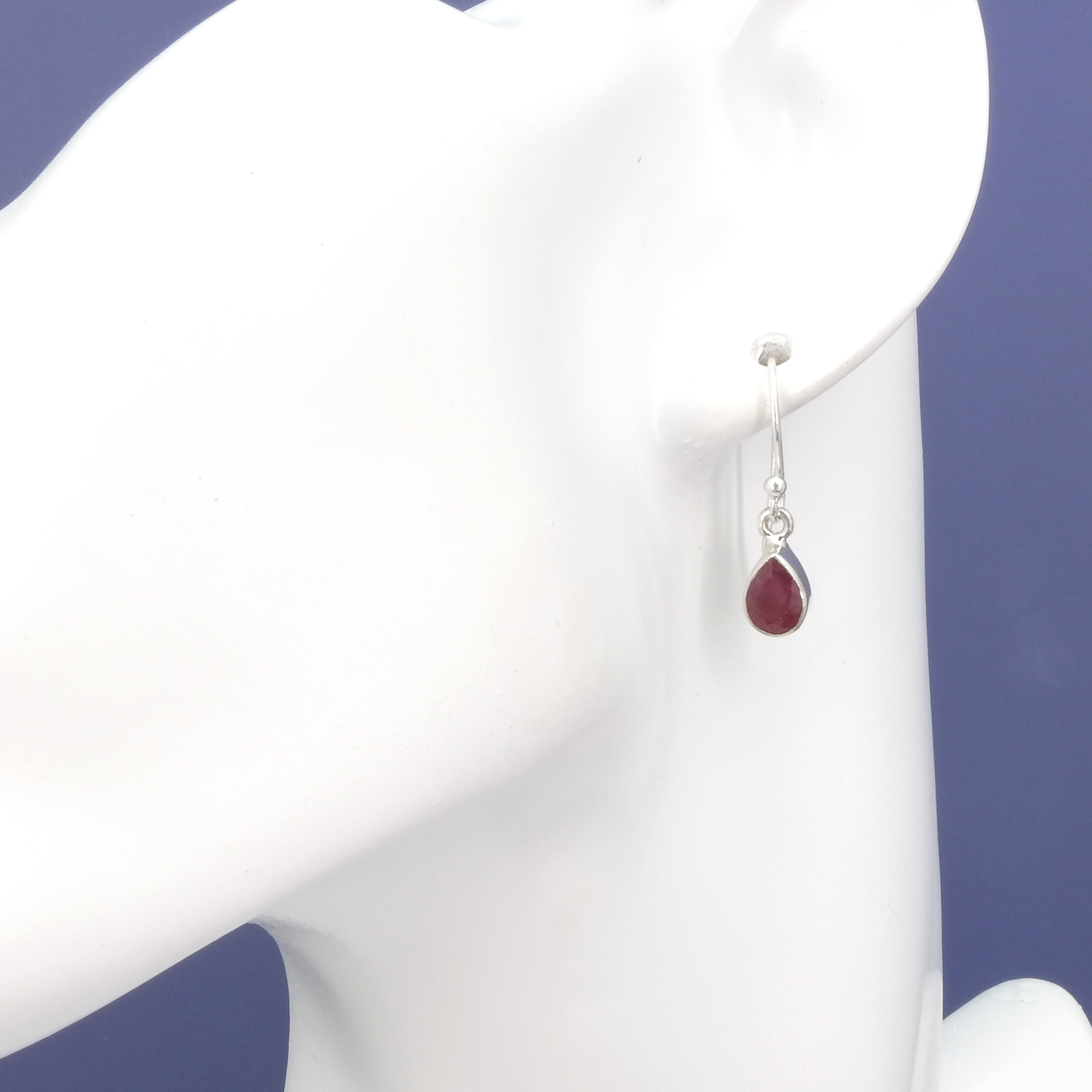 Beautiful, elegant & delicate, faceted ruby earrings - Sterling silver - Faceted ruby - 3/8" long 1/4" wide - Fishhook ear wires Choose between oval or teardrop shape