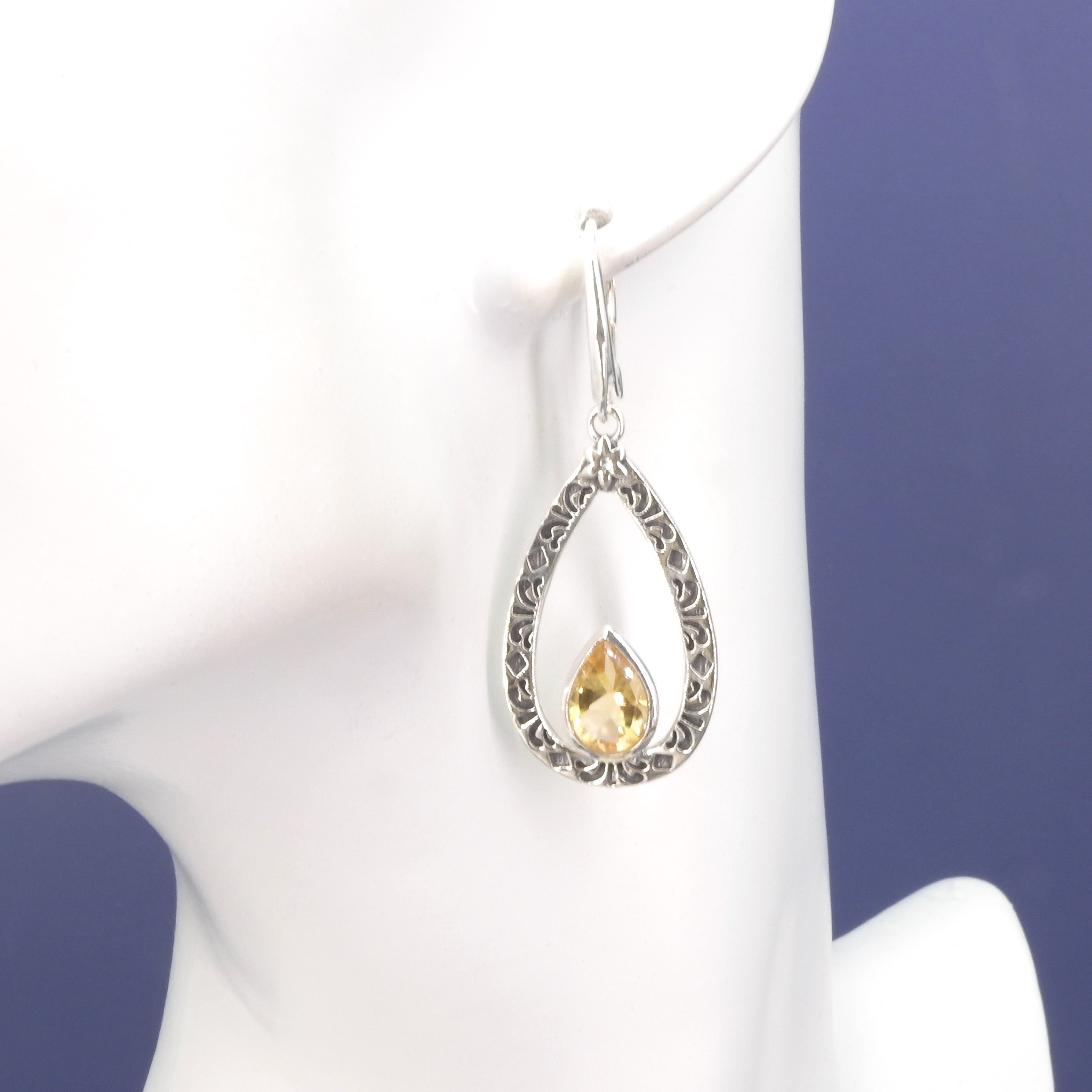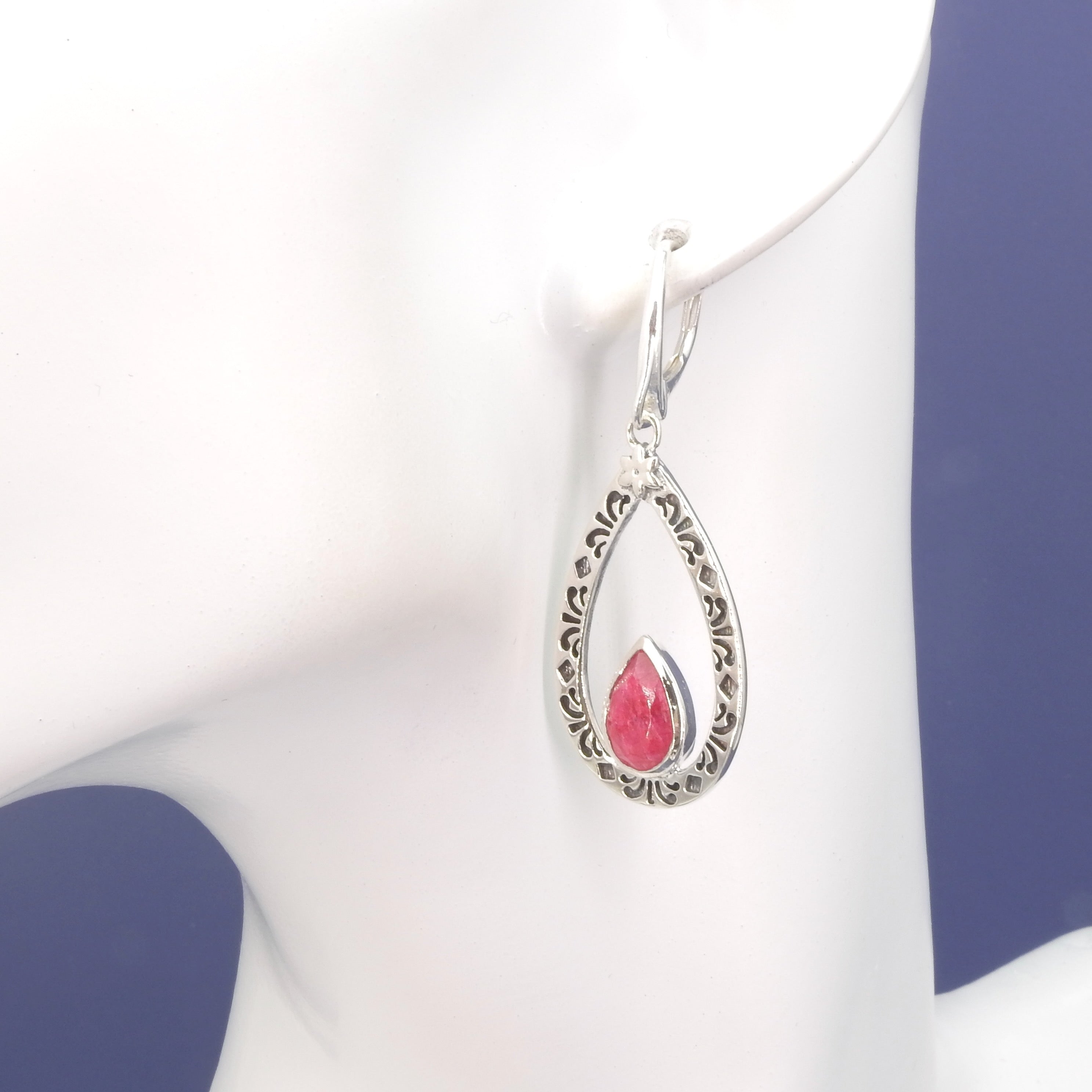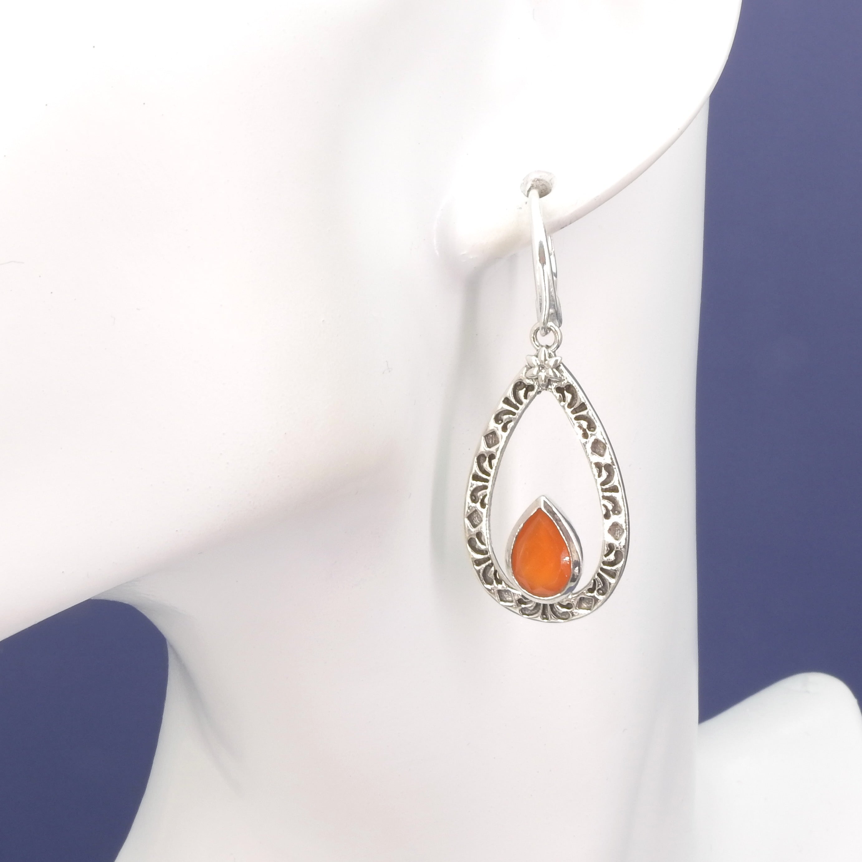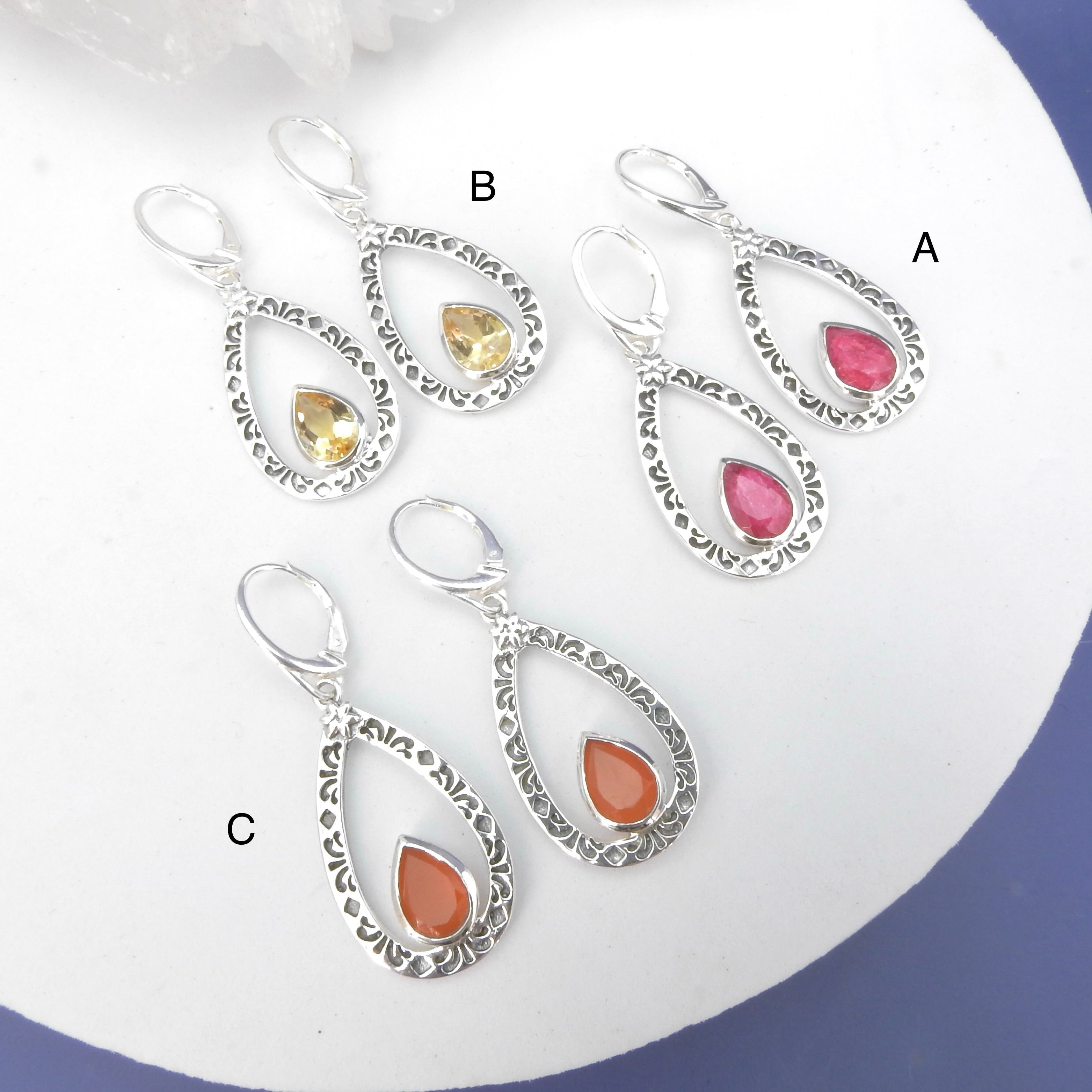 A colorful basic earring for your everyday collection. - Sterling silver with oxidized details - Choose your stone - Measures 1 1/4" long 3/4" wide - Leverback ear wires Choose your stone A = Ruby B = Citrine C = Carnelian