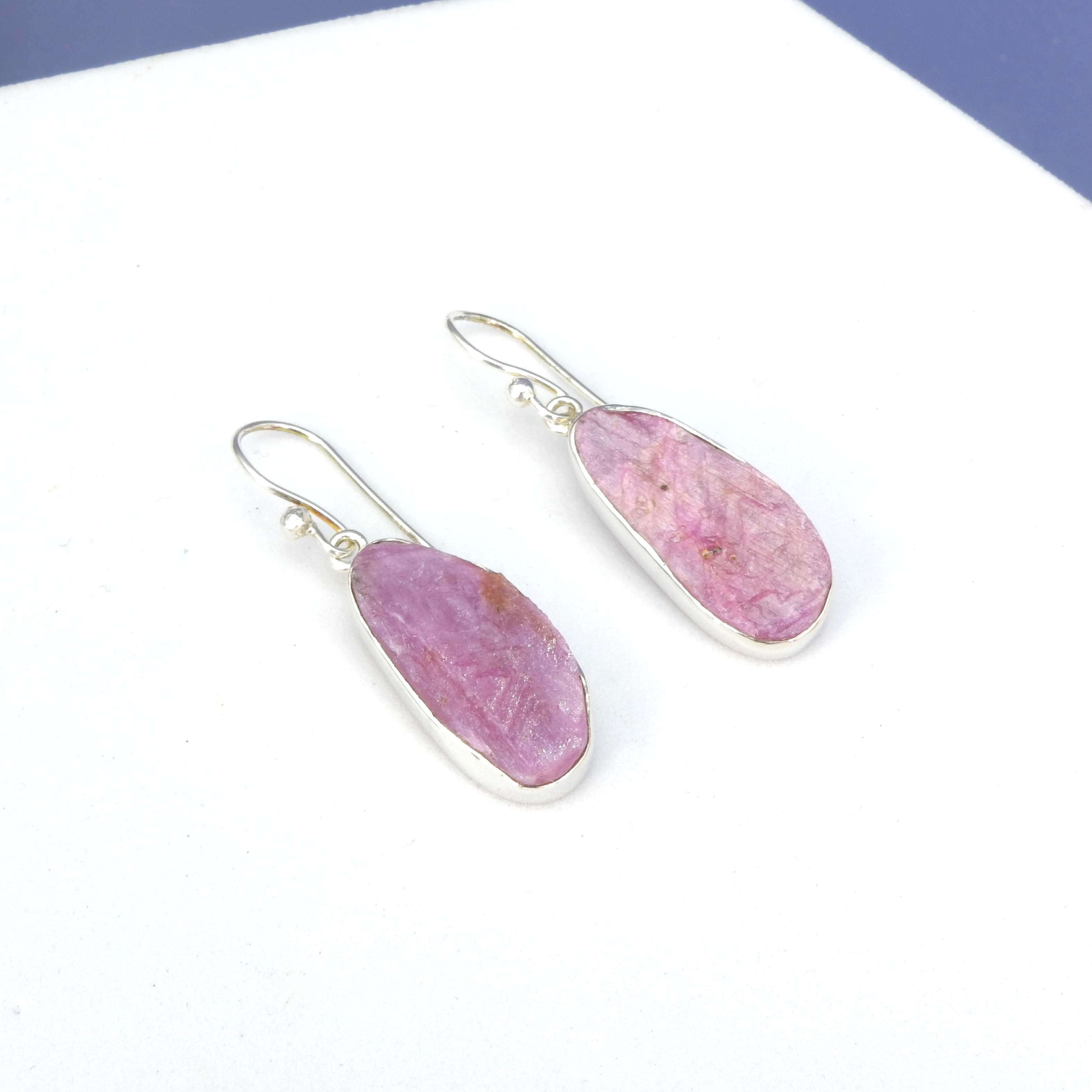 Lovely rough ruby earrings - Sterling silver - Rough ruby - Measures 7/8" long 3/8" wide - Fishhook ear wires