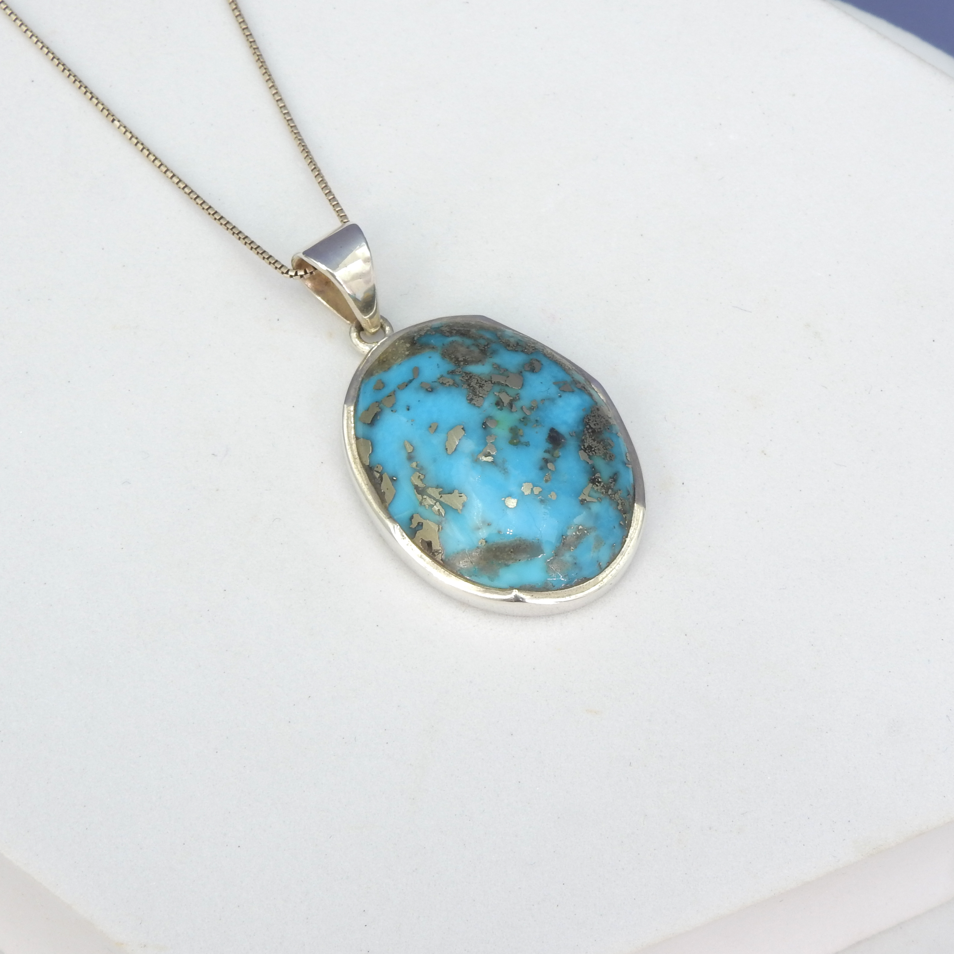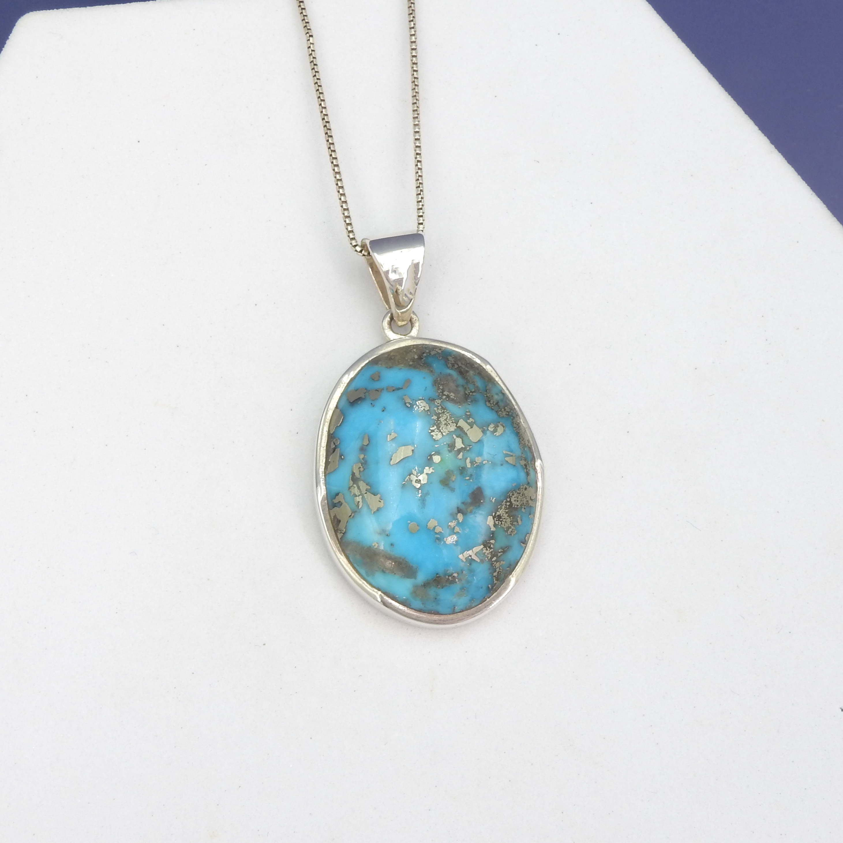 Lovely Iranian turquoise silver pendant - Sterling silver - Iranian turquoise - Measures 1 5/8" long with bale 7/8" wide - 18" silver chain included