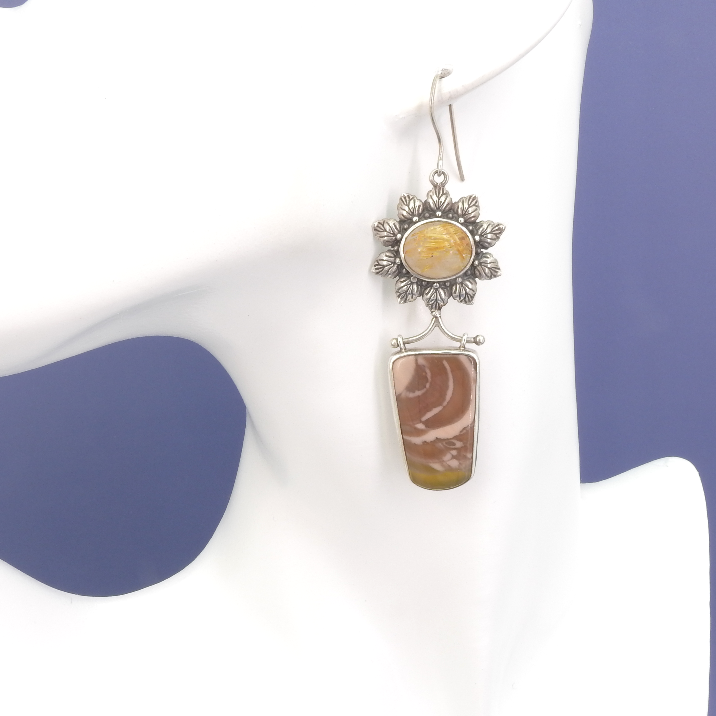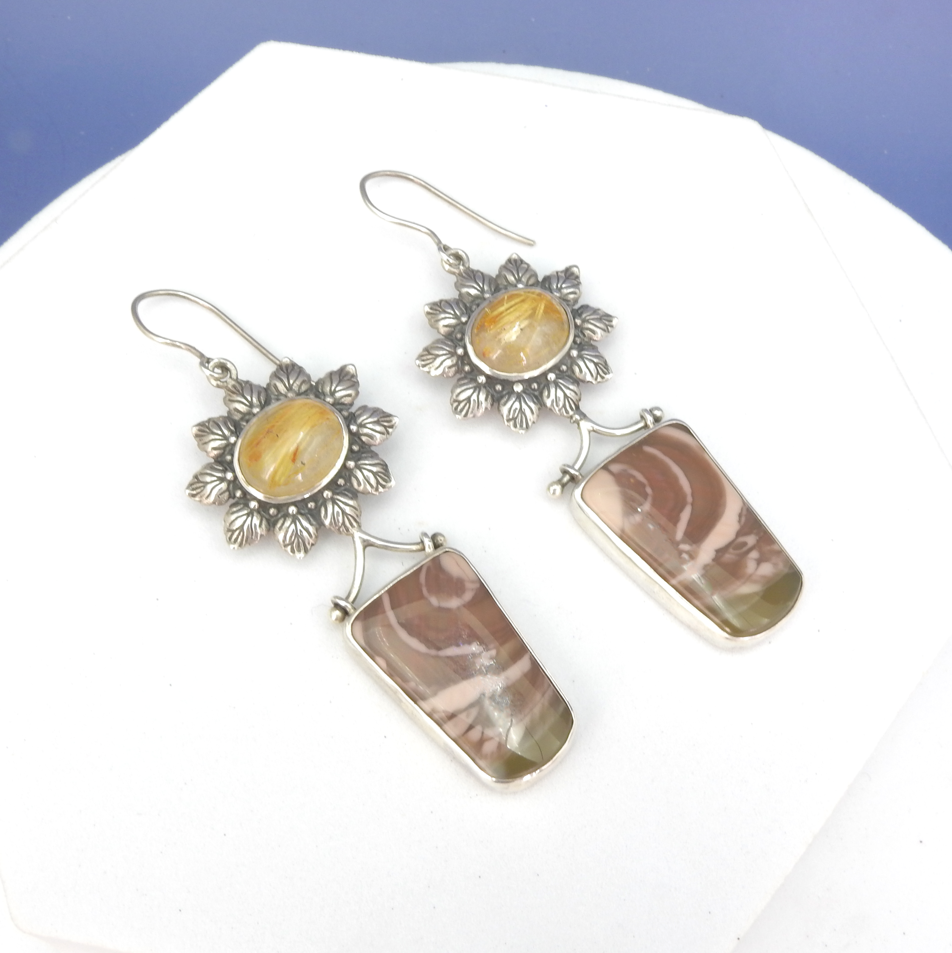 Sterling Silver Rutilated Quartz & Jasper Earrings